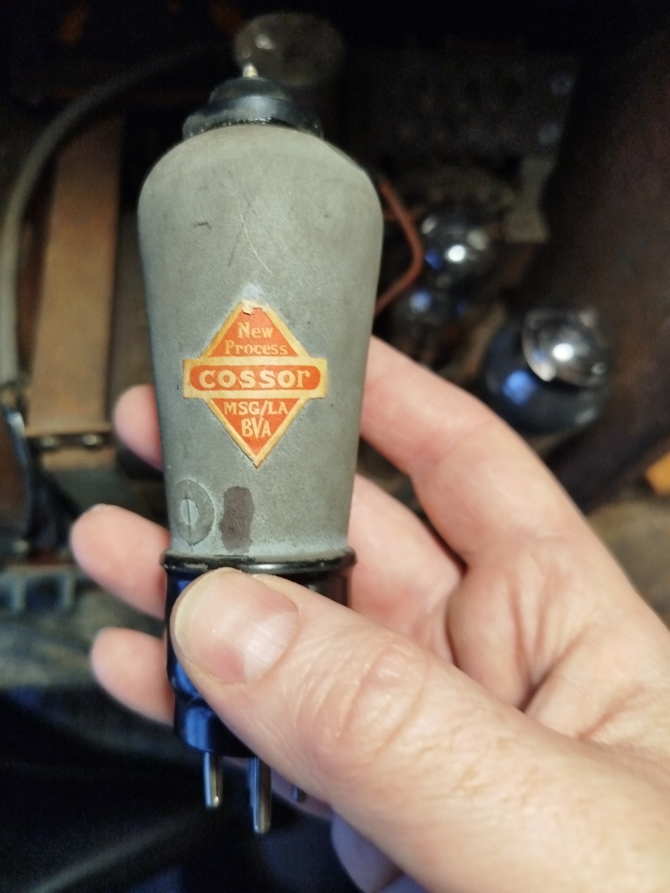 Voici une lampe de marque Cossor dans un Philips 638A mise à la place d’une AF2. (Elle se comporte comme l’Af2 en tout cas in situ)