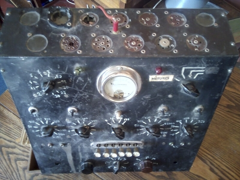 C’est un lampemètre déjà assez évolué, et fonctionnant en courant continu , pas un simple lampemètre de dépannage fonctionnant en alternatif brut et testant le tube en diode (c’est bien !) mais je suppose qu’il n’y a pas sa nlotice ni son recueil de combinaison (c’est moins bien , et absolument nécessaire pour l’utiliser …Si vraiment ces documents sont absents, il va falloir les reconstituer , et c’est beaucoup de travail …Tant pour relever le schéma de l’engin et faire la « rétro-analyse » du fonctionnement, quepour lister les comninaisons des centaines de tubes testables !)