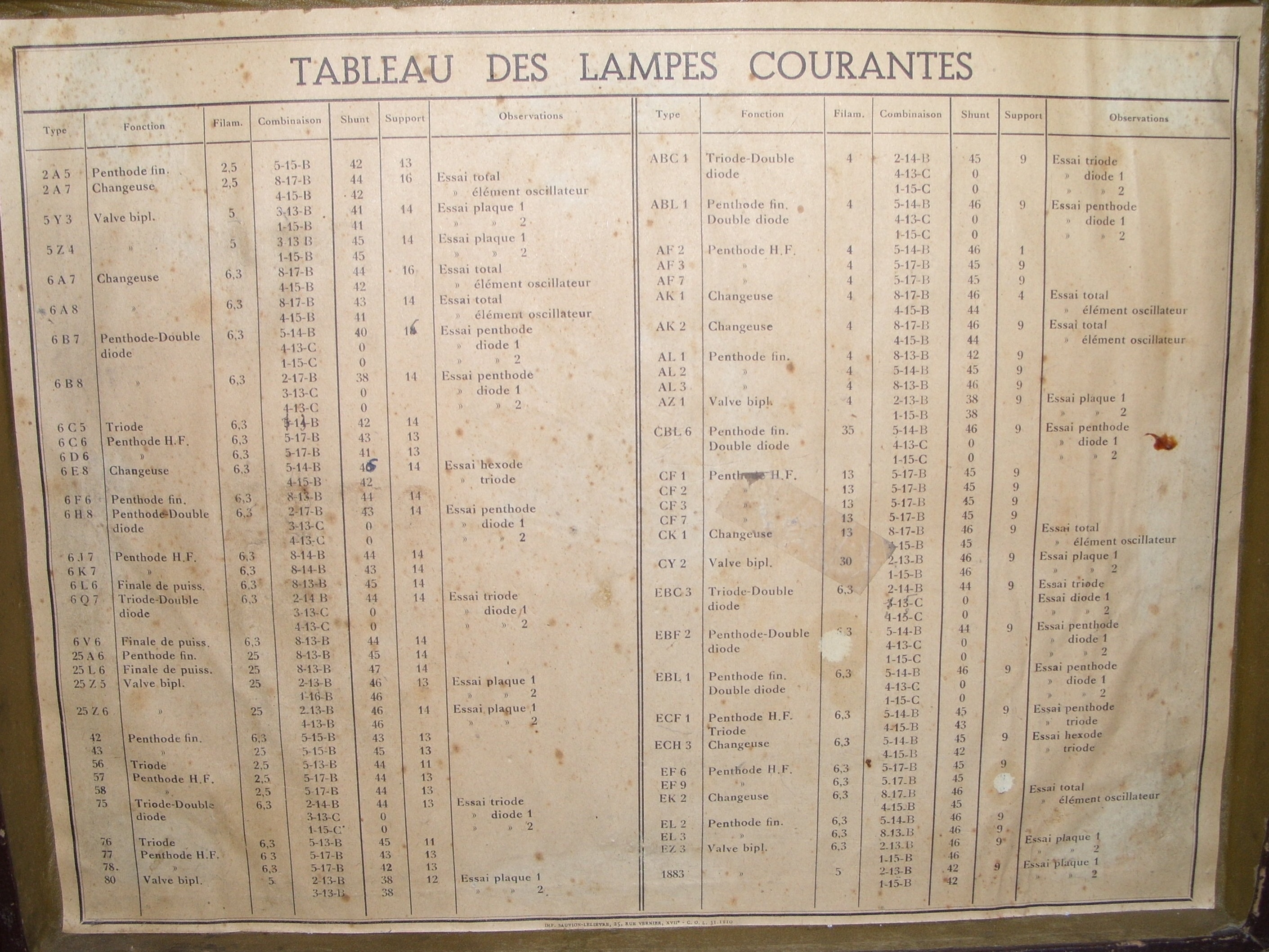 On en parle ici TSF-Radio: Forum et ici <a href="Gérer ses LAMPES ! - #9 par Garric12 d’ailleurs la photo du couvercle tirée du dernier sujet avec le « tableau des lampes courantes »