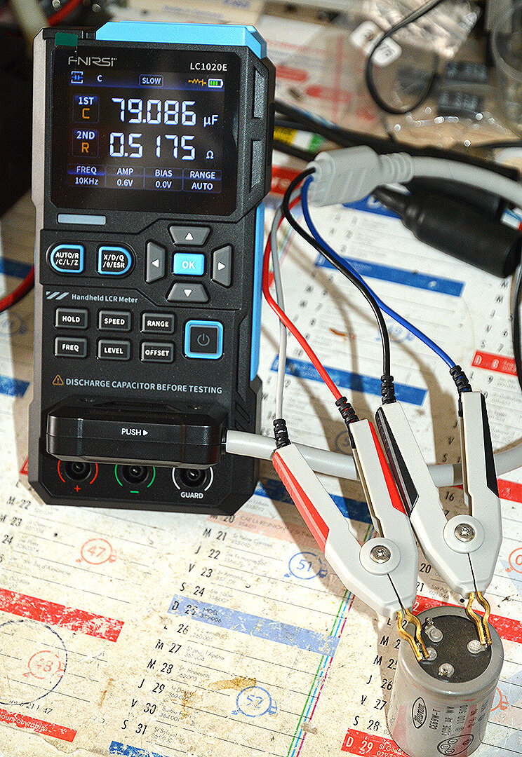 Mesure d’un chimique de 100 µF 500 V, capa et ESR sous 100 Hz et 10 kHz