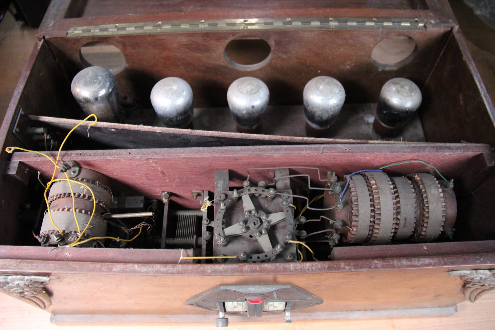 Manque un bouton, les pieds, mais plus grave il semble manquer une bobine du variomètre double, puisque sur celui du GL o, aperçoit deux bobines et que l’ axe semble traverser la première bobine avec un prolongement vers ou devait être la deuxième!