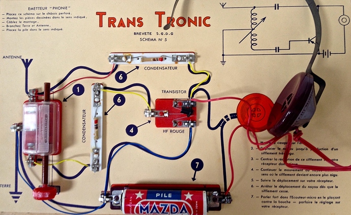 Super l'émetteur Trans Tronic ! Ca c'est l'émetteur phonie. Mais il y a aussi possibilité de l'utiliser en graphie, avec le petit manipulateur fourni dans la boite.