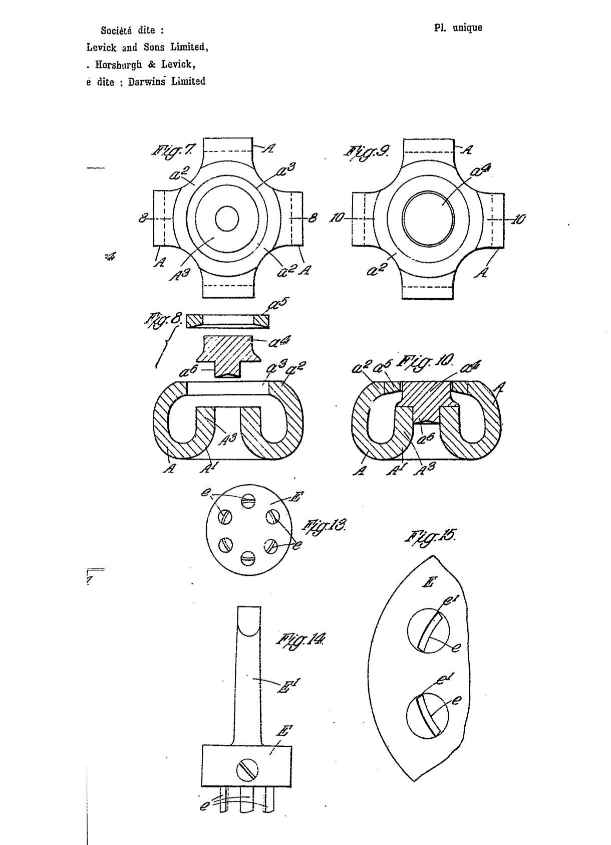 On trouve notamment : « DARWIN 6 » (avec un doute sur le « 6 » qui pourrait être « C » ou « G »), ou « PRK 6 PATENT » (toujours le même doute sur le 6), mais aussi « DARWINS LIMITED ENGLAND ».