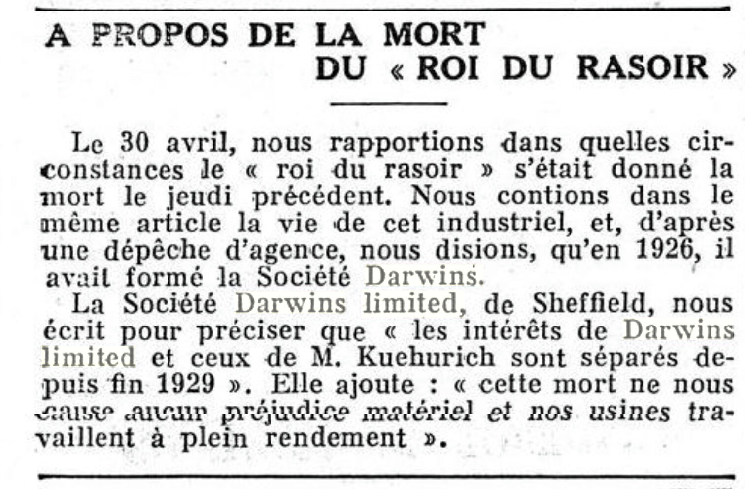 En 1926, c’est l’industriel Paul Richard Kuehnrich qui est au poste de directeur général de Darwin et Milner. Très influent et controversé, il a malheureusement été très vite oublié de l’histoire. Si son histoire vous intéresse, je vous laisse plusieurs liens. Mais attention, son histoire est tellement restée dans l’oubli que certains récits semblent se contredire.