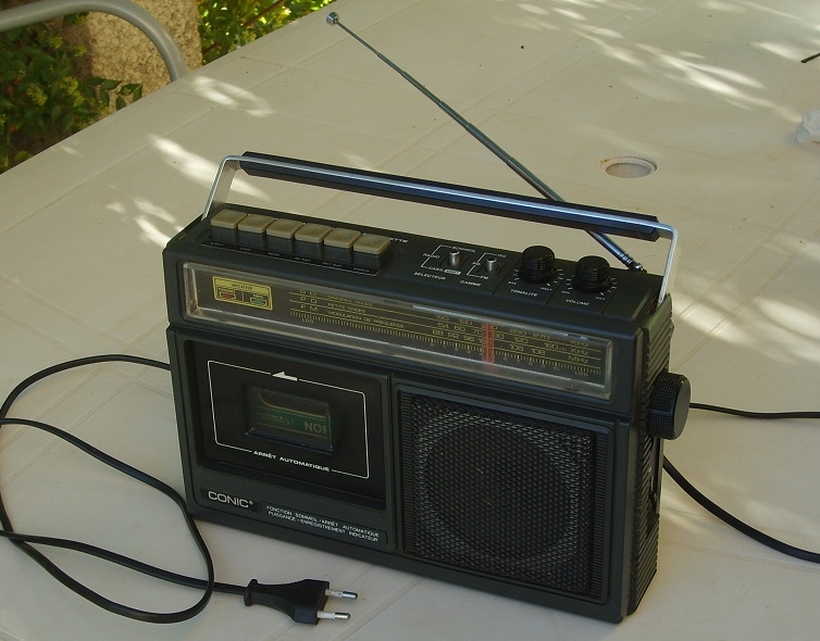 Trouvé ce poste de marque inconnue au GL : CONIC ??? Modèle 3039. Sa forme n’a rien de conique cependant. Tout est inscrit en français, même la mention de l’origine : “fabriqué à Singapour”.