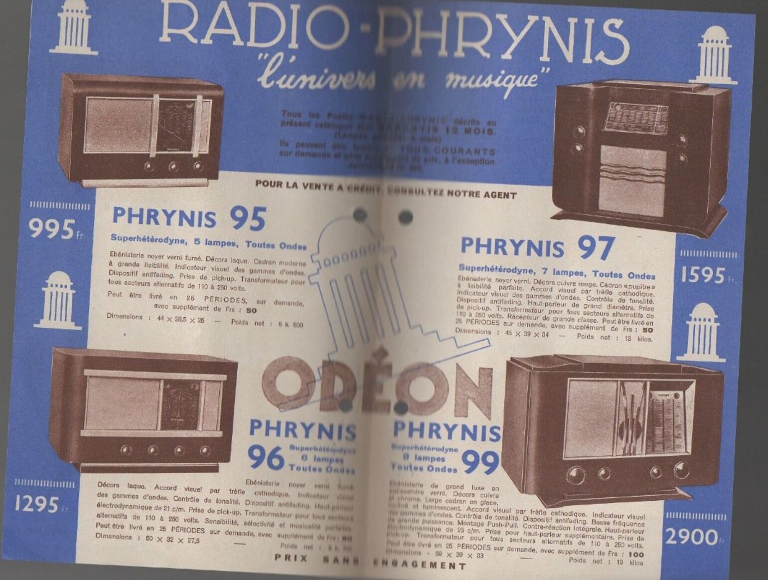 Quelques modèles Odéon: