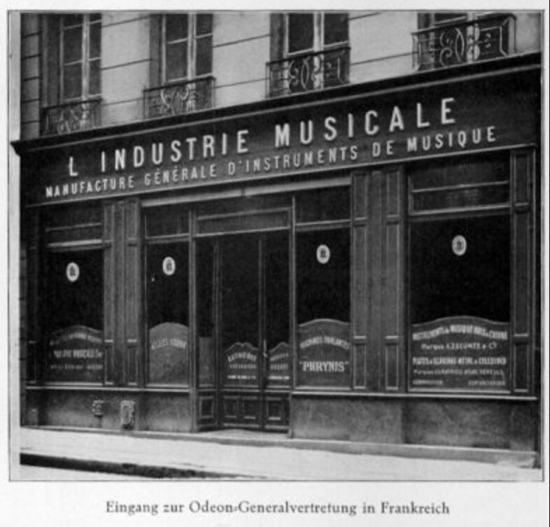 La brochure commémorative « 50 ans de Lindström » de 1929 montre la « représentation générale française Odeon » :