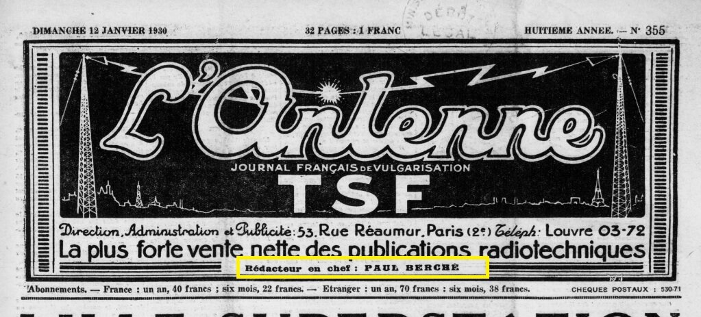 Quant à Paul BERCHE, ben, certes c’est vieux, mais en radio il a écrit “Pratique et théorie de la TSF” édité 16 fois entre 1929 et 1965 dont la 15ème et 16ème édition revue et corrigée par Roger A. RAFFIN, autre radioamateur… Ce livre est parfois appelé “Le BERCHE”. Il y en a qui l’on lu. Certains ont pu assimiler cet ouvrage à une bible en la matière.