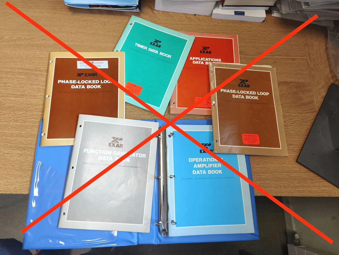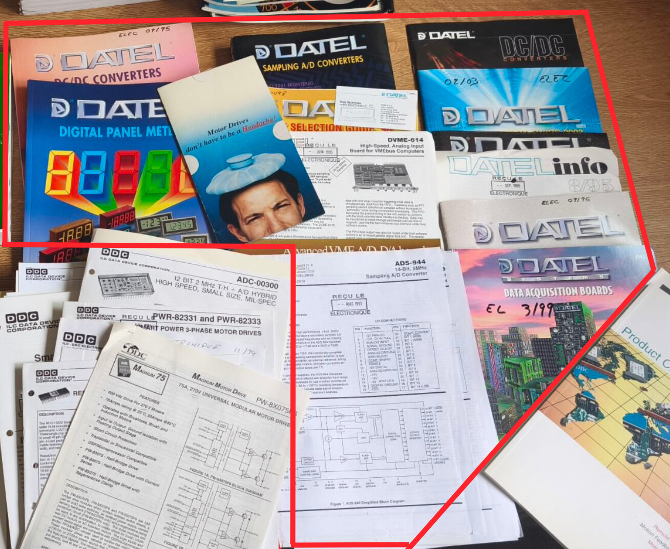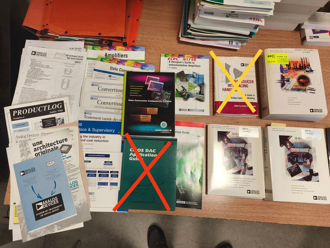 J’ai bien mis de côté tout les documents que vous avez réservés, à l’exception des trois databooks marron de Motorola, qui ont été récupérés par un collègue dans la foulée, ce matin.
