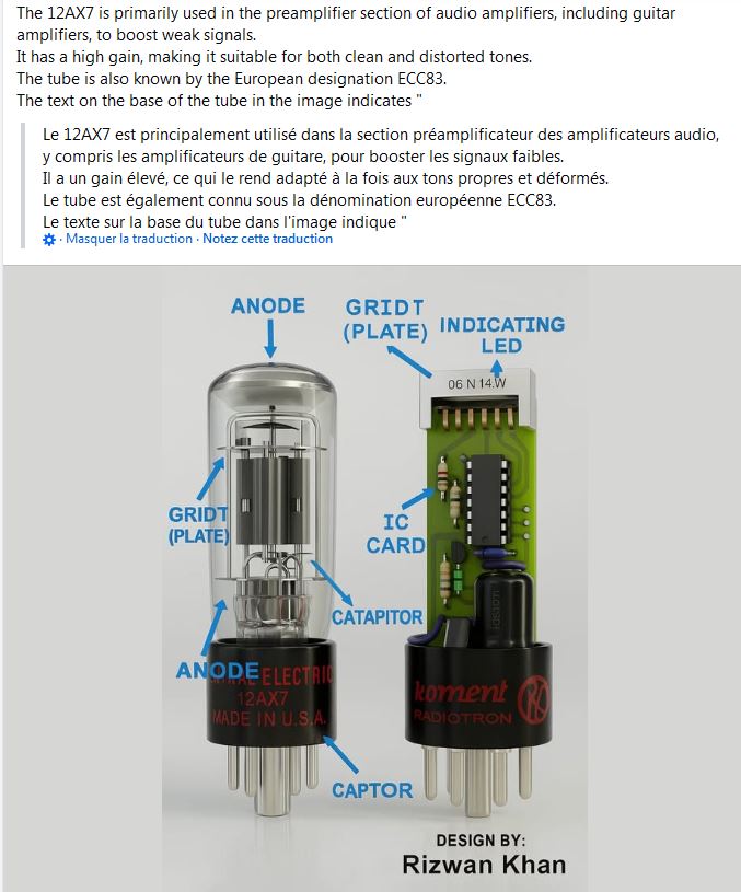et puis il y a des choses à découvrir là bas, par exemple une 12AX7 en octal et avec un « catapitor » dedans et un « captor » dehors, ça c’est intéressant :