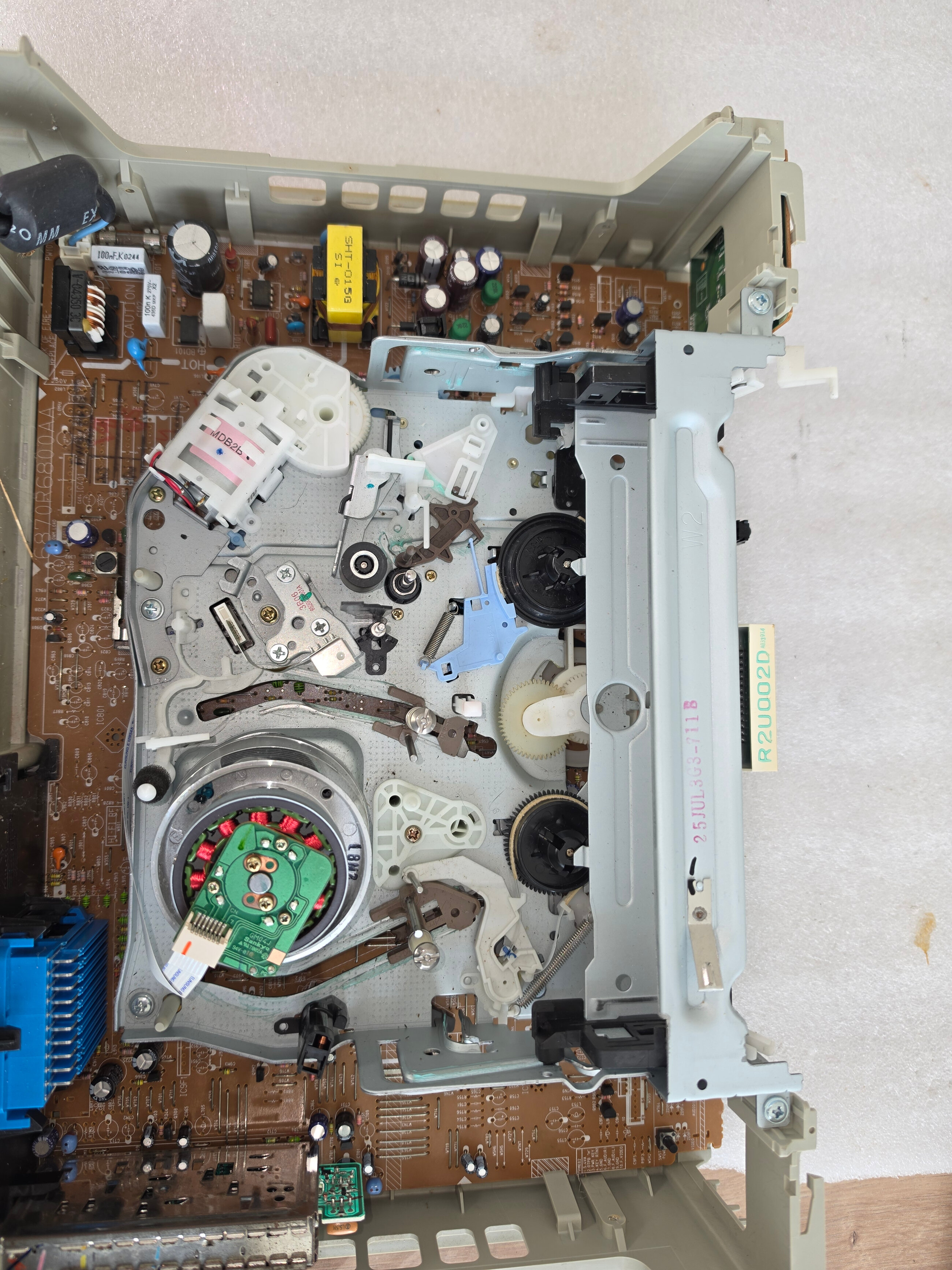 Dans mon cas la cassette n’est pas entrainée, rien ne se passe et je n’entends rien, pas de bruits de motorisation ou petit cliquetis qui m’orienterait vers le problème.