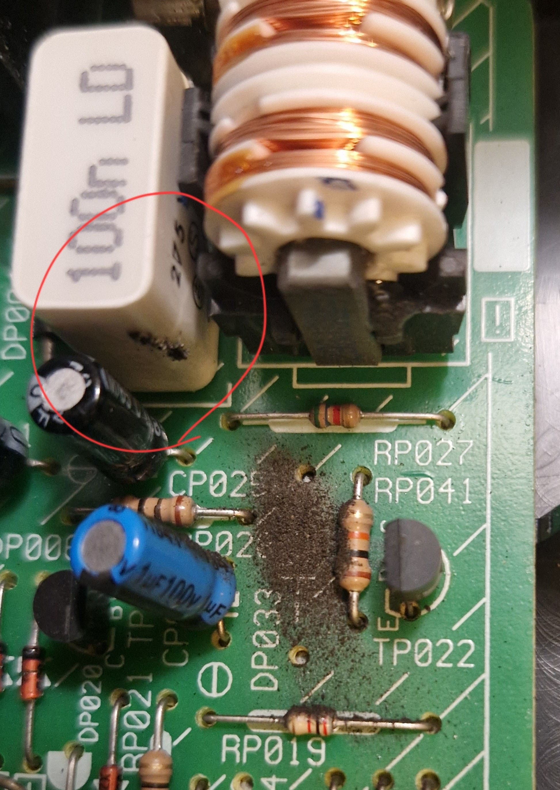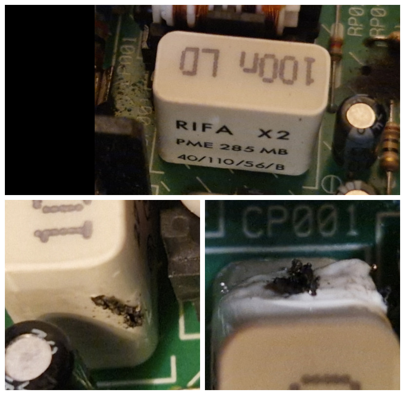 C’est bien le condenseur de filtrage qui semble avoir cramé! S’il ne sert à rien, je ne vais pas forcément le remplacer, mais il faudrait au moins le retirer je suppose.. comment faire ?