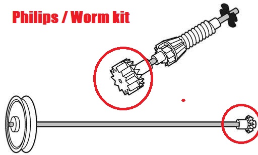La mécanique Philips turbodrive (Schneider aussi) démontée, analysée par John-John (français),reparée il n’ y a pas mieux comme tuto video (il ne montre pas pour le kit worm c’est vrai, voir d’autres de ses videos pour ça):
