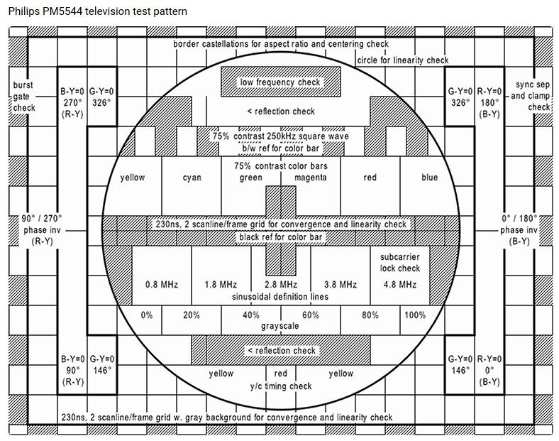 Il serait intéressant d’essayer avec la mire Philips PM5544, la version originale (pas celle de TDF), afin d’avoir tous les pavés de définition, notamment ceux du 3,8 Mhz et du 4,8 Mhz :