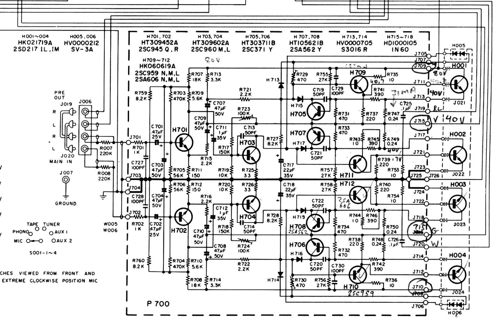 Cavalier in/out enlevé il y a crachotement sur les HP canal droit uniquement j’en déduit donc que c’est sur le module d’amplification ou sur l’alimentation et non sur le pré-ampli.