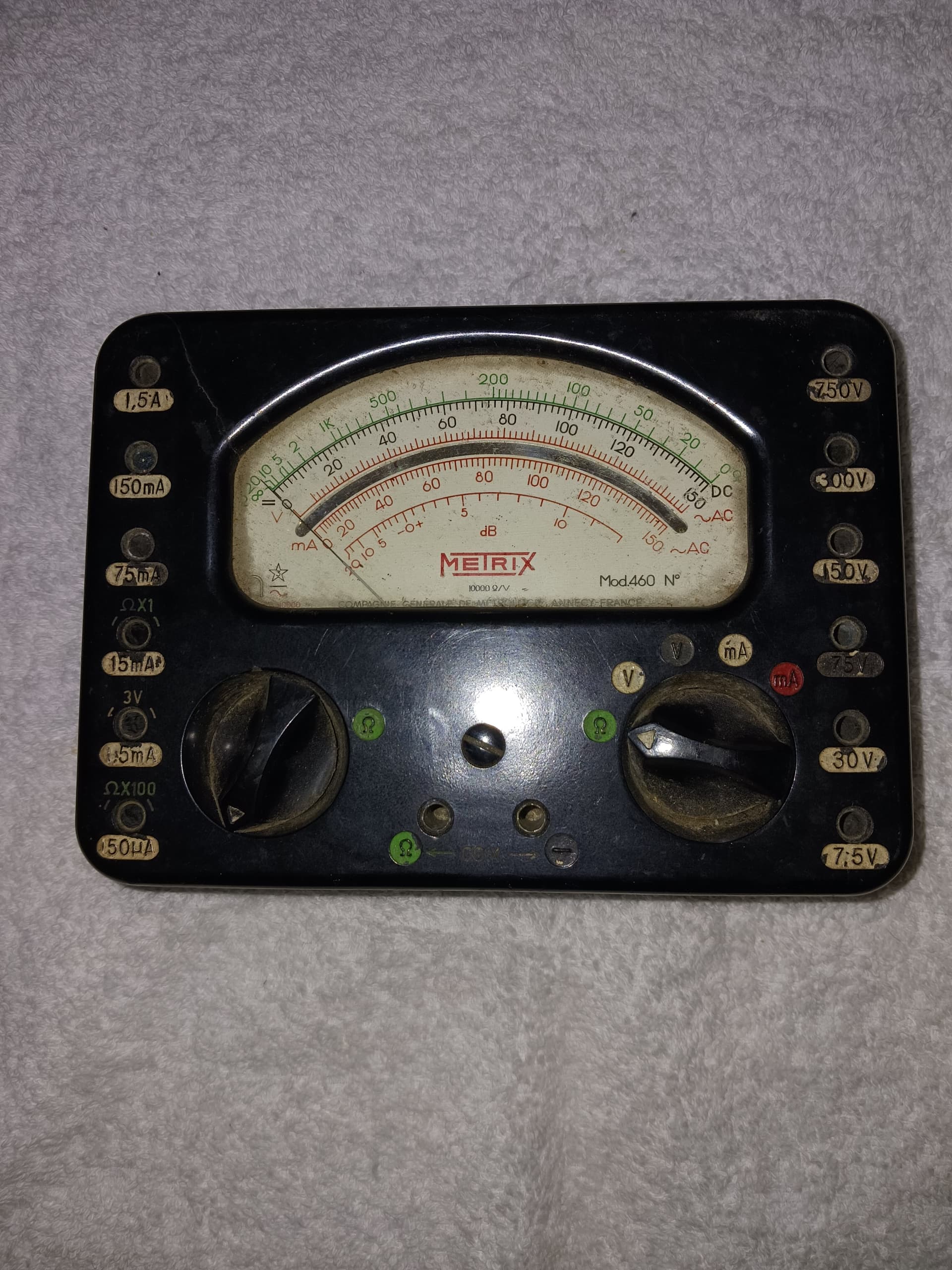 Bonjour à tous Je cède ce metrix 460 pour pièces. Aucun calibre ne fonctionne. Bakélite en mauvais état. Le galva bouge bien. Prix 9eur port mondial relay compris. Belle journée, bon week-end
