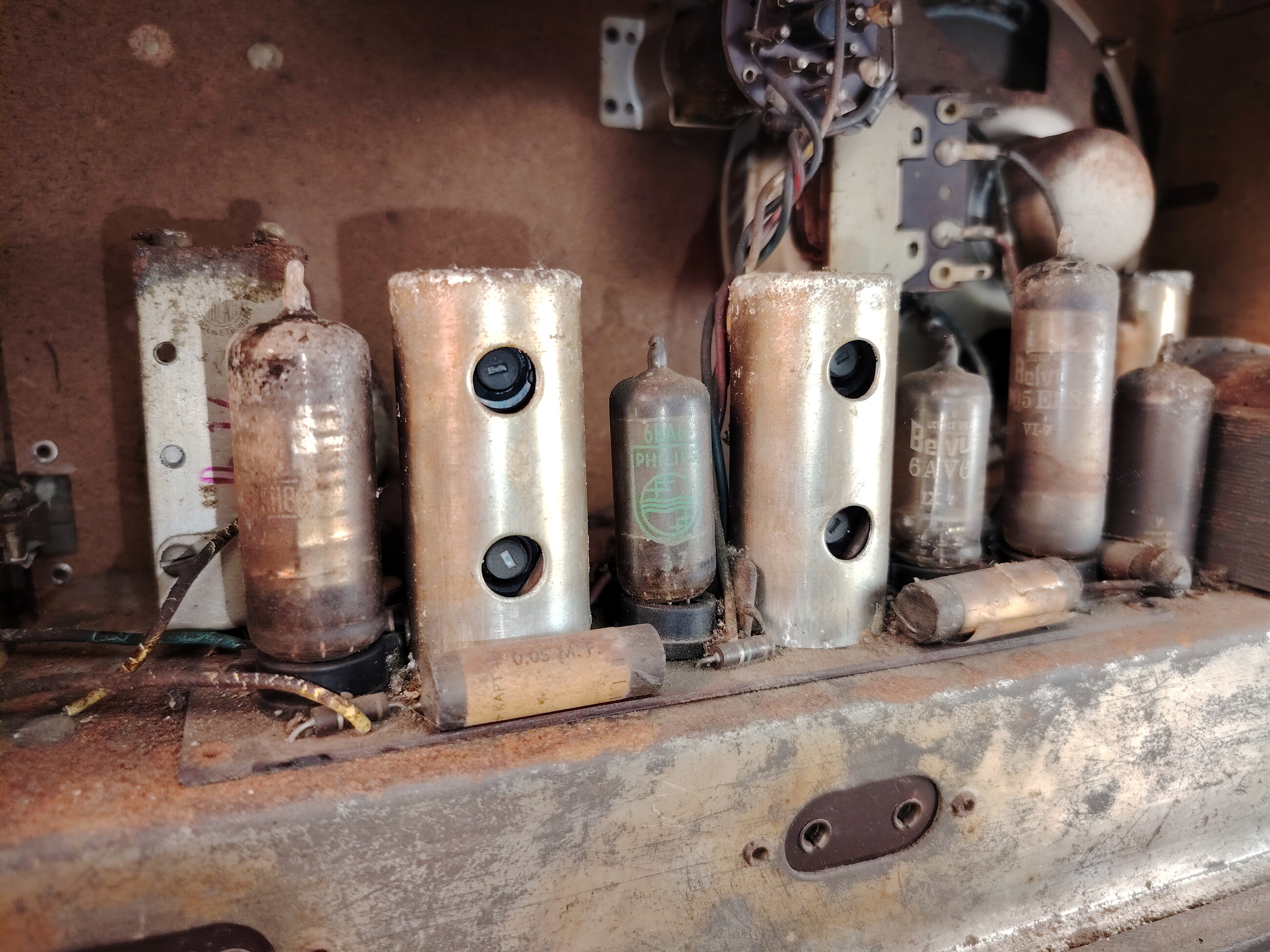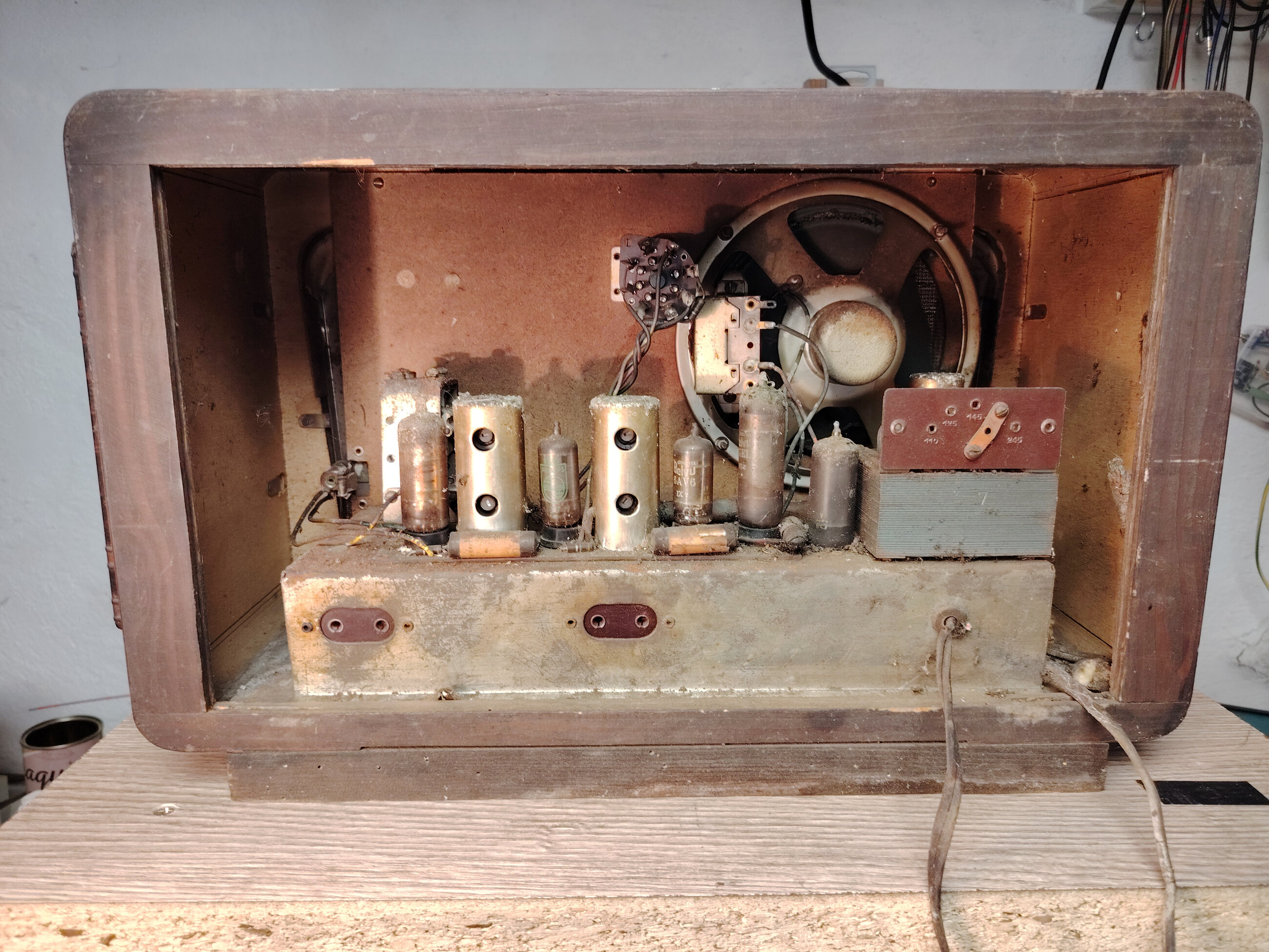 je démarre une tentative de restauration d’une TSF Mikson, certainement des années 50. Si son état le permet, et on peut en douter…