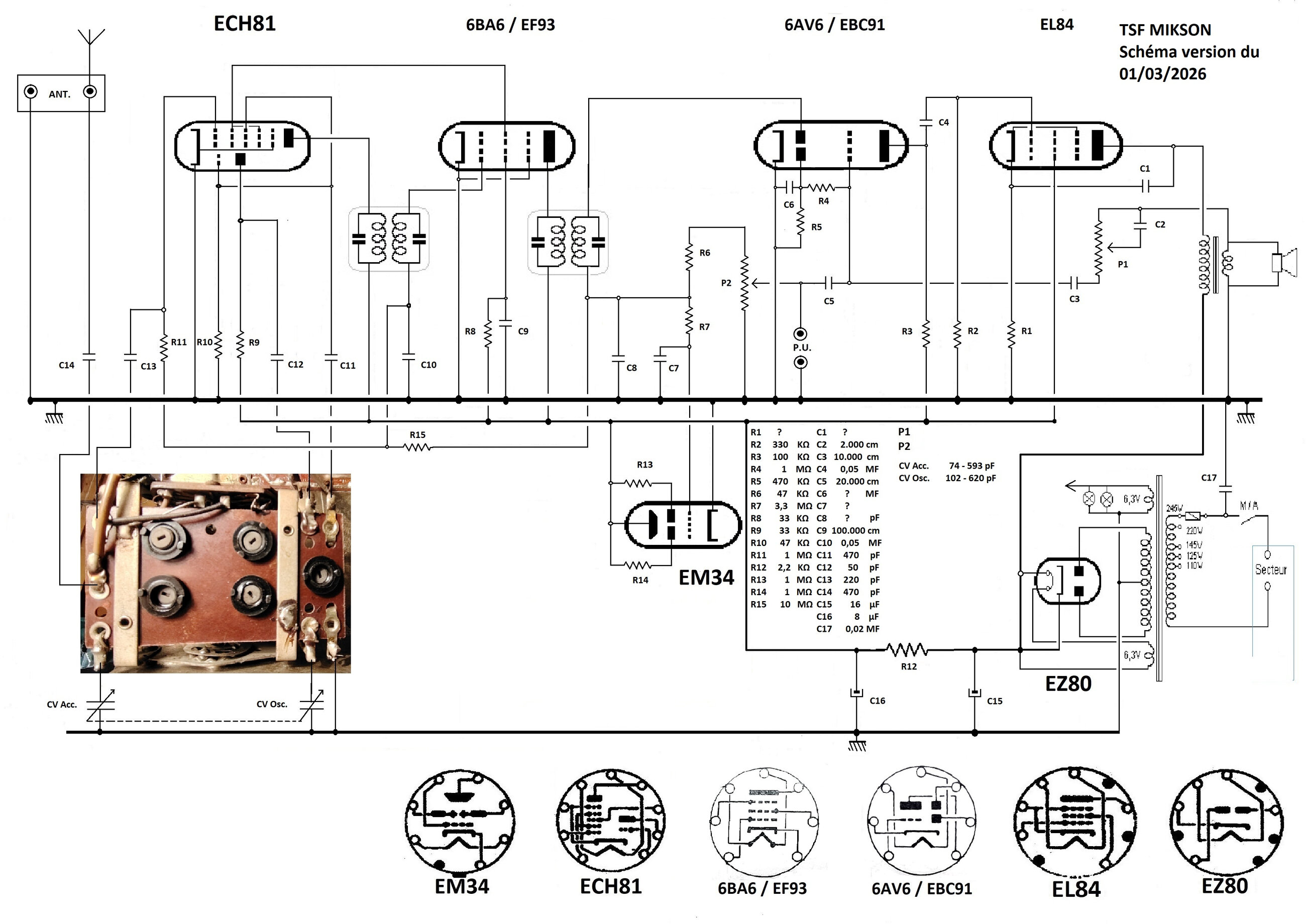 Pour le relevé du schéma, je ne m’inquiète pas, c’est un classique ECH81,EF93,EBC91,EL84,EZ80,EM34. En prenant le temps, le relevé sera fait.