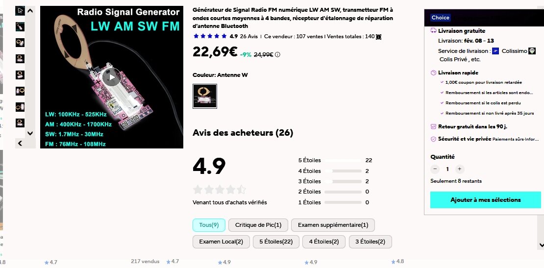 Celui qui est en boîtier a de moins bonnes évaluations que la version nue.En tout cas il fait le job, faire revivre nos vieilles radios! C’est une alternative pour ceux qui ne peuvent pas construire le mini TX de Radiofil, et c’est mon cas.
