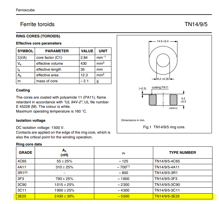 Je ne pense pas que le marériaux soit important, c’est pour un transfo large bande.