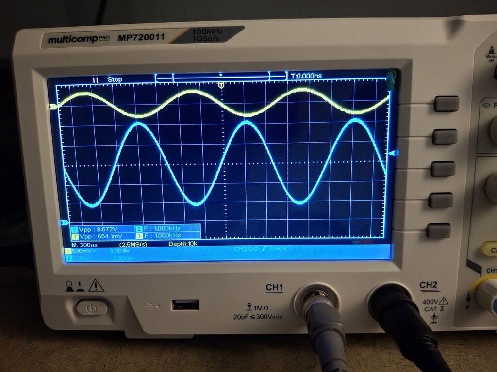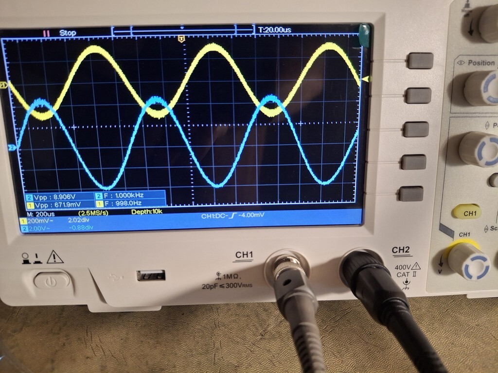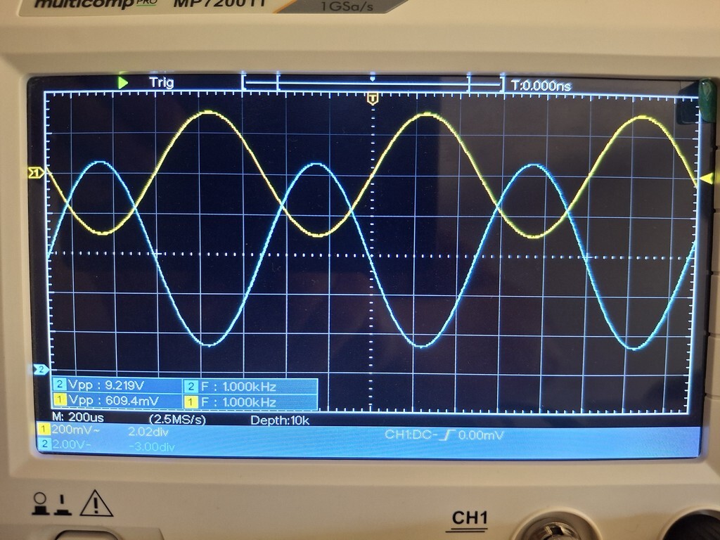 Je suis retourné chez moi chercher un générateur BF pour faire des tests sans le module Bluetooth et essayer d’éliminer les oscillations suite a la remarque de @Osgood et là tout fonctionne correctement