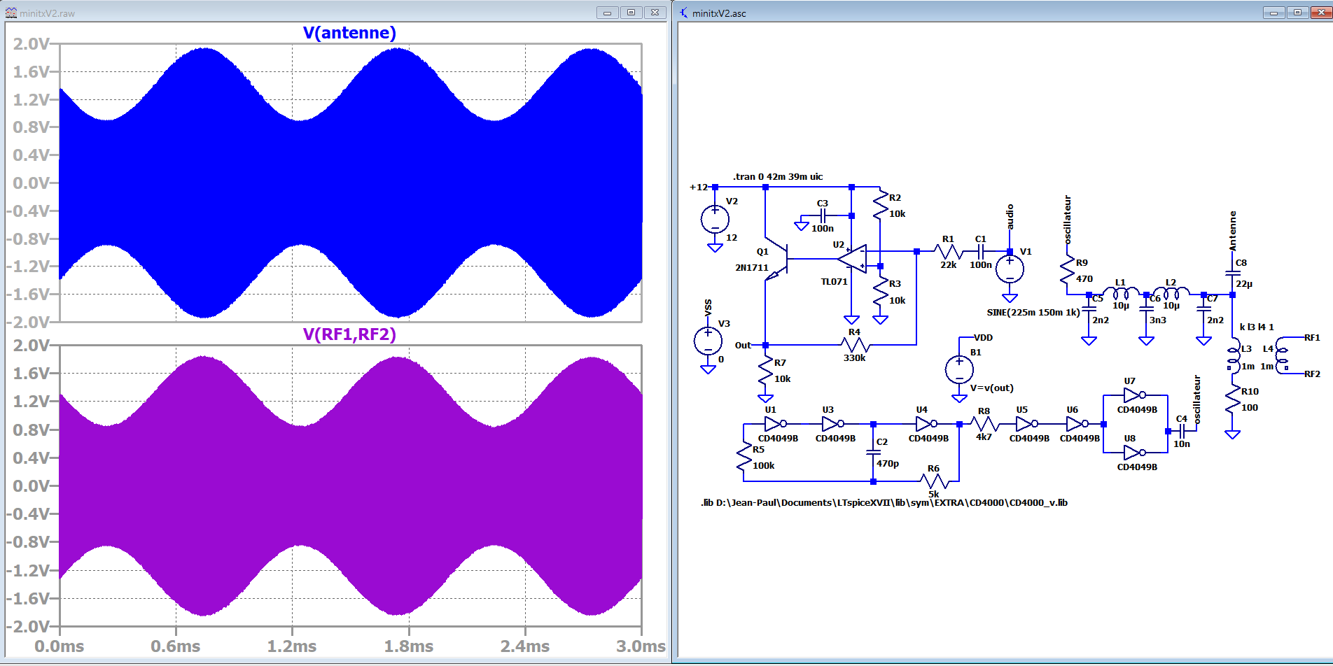 En attendant un résultat en réel, voilà ce que ça donne en simulation avec les signaux antenne et RF.