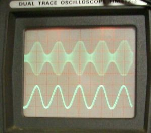 Un condensateur de découplage de l’ampli modulé semble avoir une valeur un peu trop élevée (flou entre le haut et le bas de la courbe)