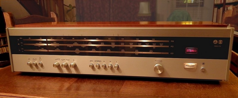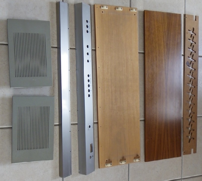 en attendant, je vous laisse vous extasier sur l’habillage agglo-plaqué-noyer (très beau!) alu et flancs PVC, ainsi que les trous d’aération dans le panneau arrière ; on comprend mieux l’esthétique des appareils Eurelec, lorsqu’on sait que les ébénisteries devaient être envoyées par la poste, et donc être démontables !