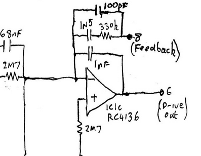 oui, je comprends. Les signaux transmis par les deux 2.3M vont être intégrés et ressortir en 6 mais il y a aussi l’entrée 8 qui ressemble vguement à un ampli de charge, improbable ici.