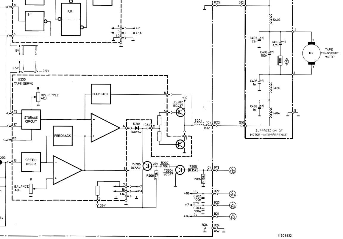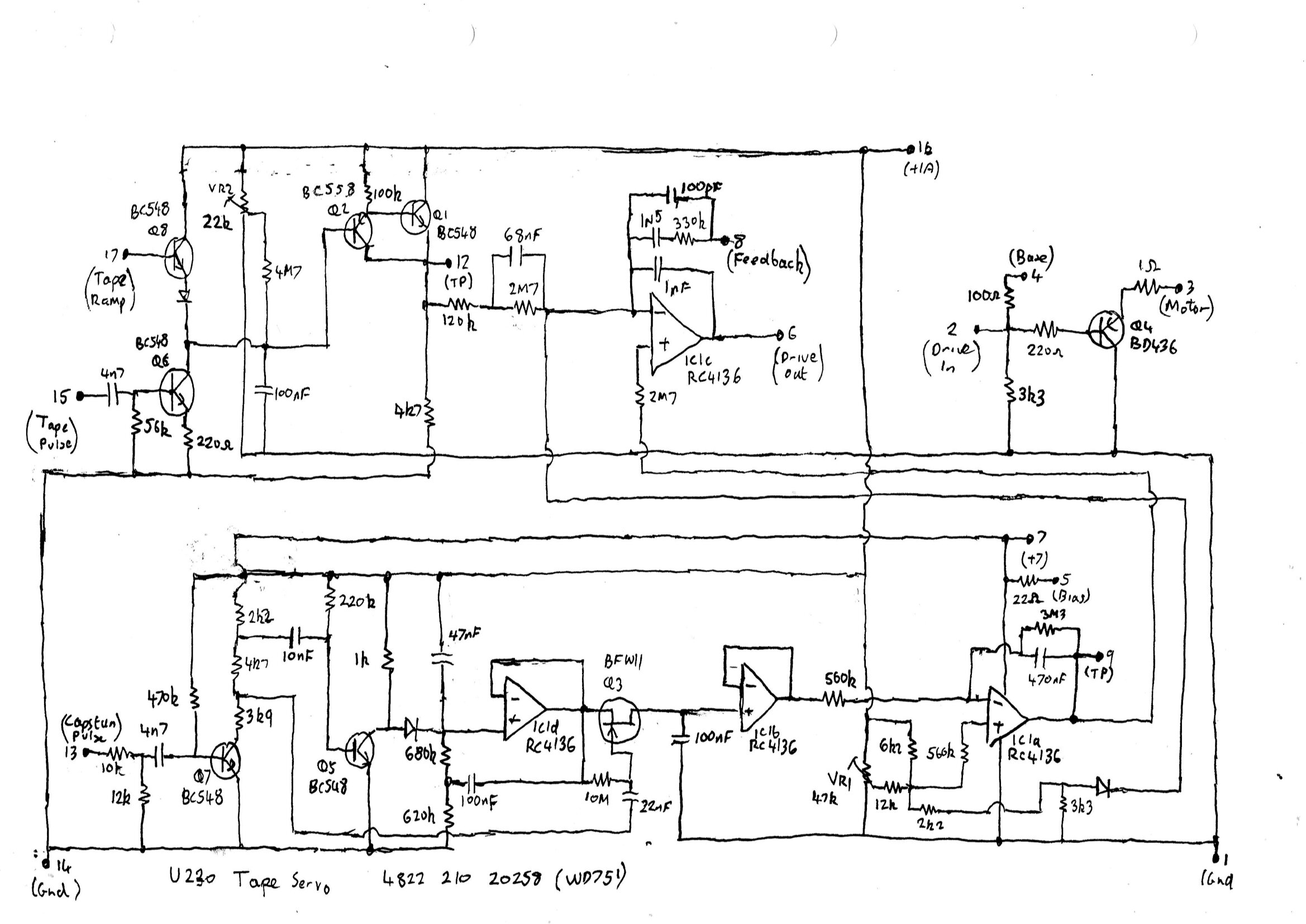 heureusement depuis, certains ce sont amusé à faire les schémas de ces modules, et voici celui en question : U230_Tape-Servo_4822-210-20258.pdf (615,6 Ko)
