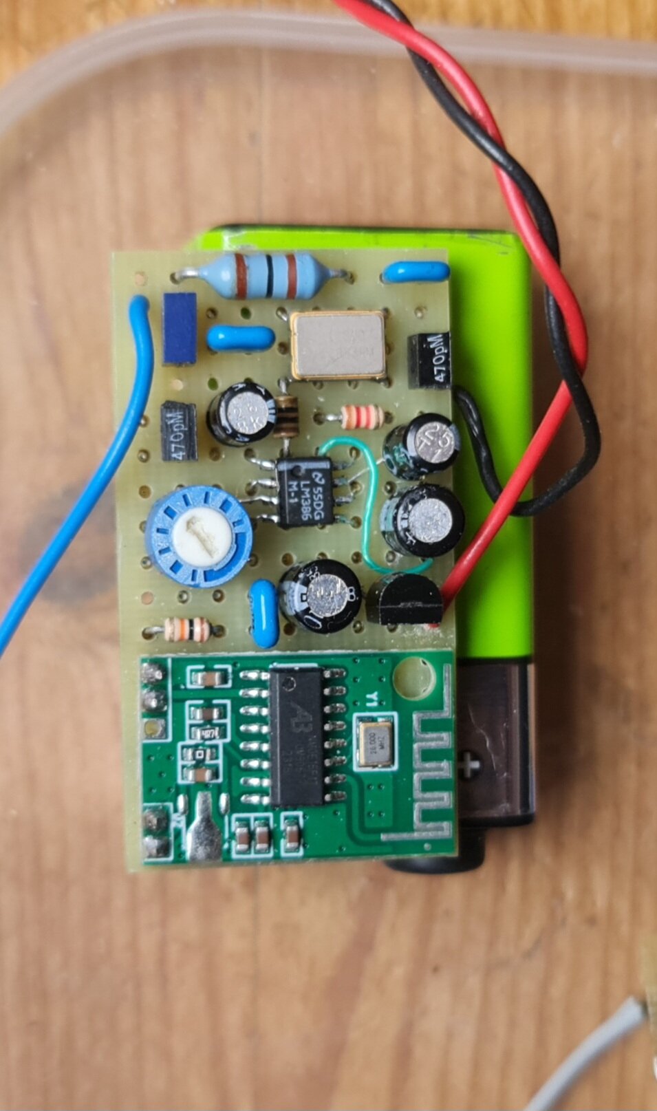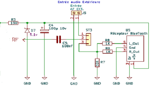 L’autre astuce est d’utiliser un convertisseur DC/DC (il y a des schémas en ligne), mais cela ne fonctionne pas toujours, en particulier quand la masse de la partie ampli BF est commune à celle du module bluetooth.