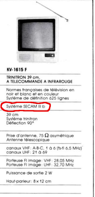 Ce très vieux téléviseur Sony ne gère probablement que le SECAM, et a sûrement besoin de l’identification trame dite « Bouteilles ». Dérégler les vis RVB n’est pas vraiment une bonne idée, car tu perds le callage d’usine.