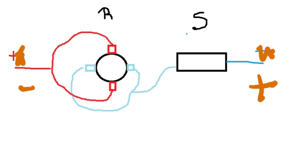 Le schéma est exactement comme tu as fait, mais le stator est avant le rotor.