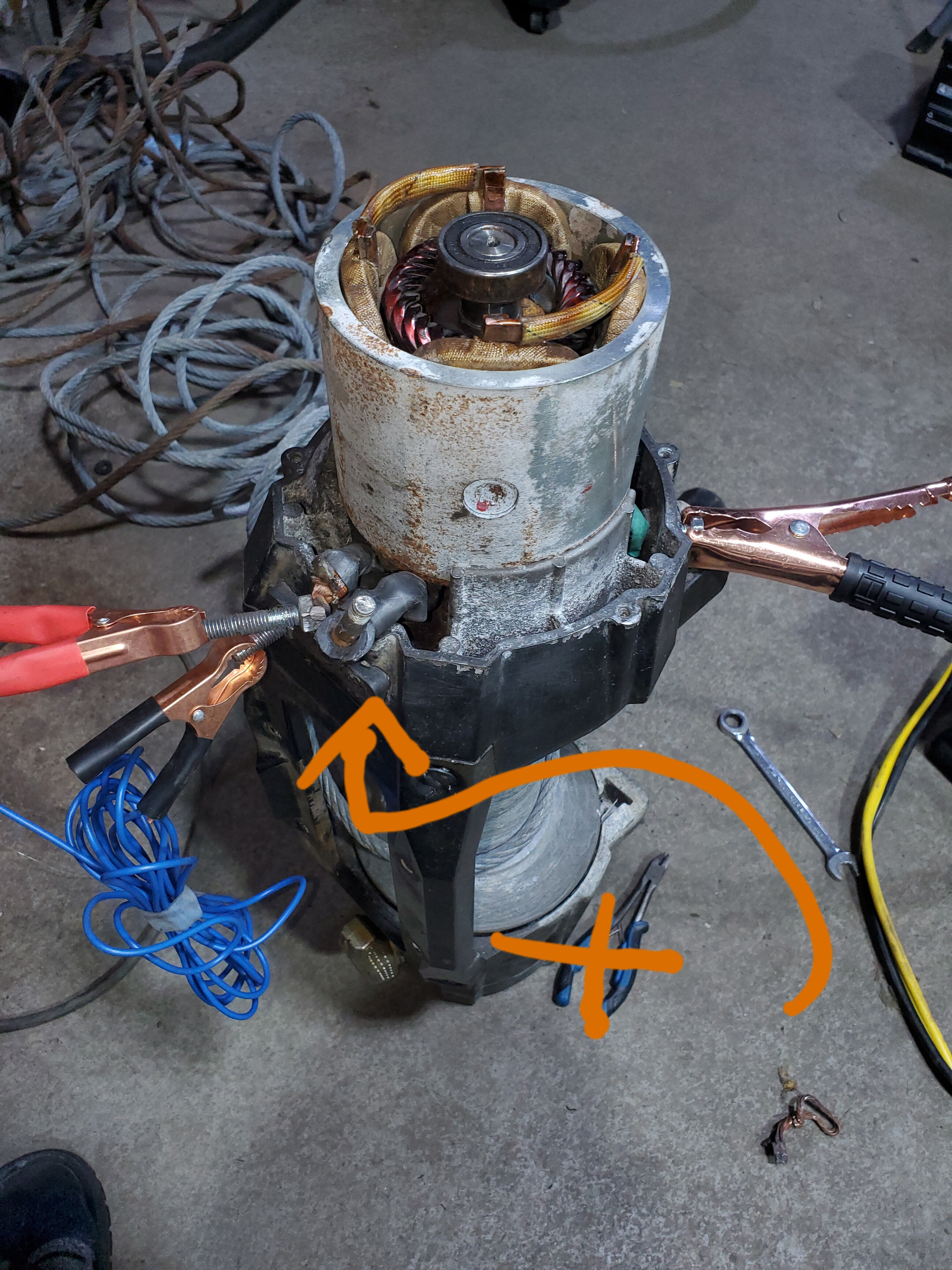 Est-ce qu’un contact entre le fer du stator et du rotor pourrait empêcher le fonctionnement ? Ni le rotor, ni le stator n’a de continuité alors tout le courant doit passer au brosses pour aller à la masse.