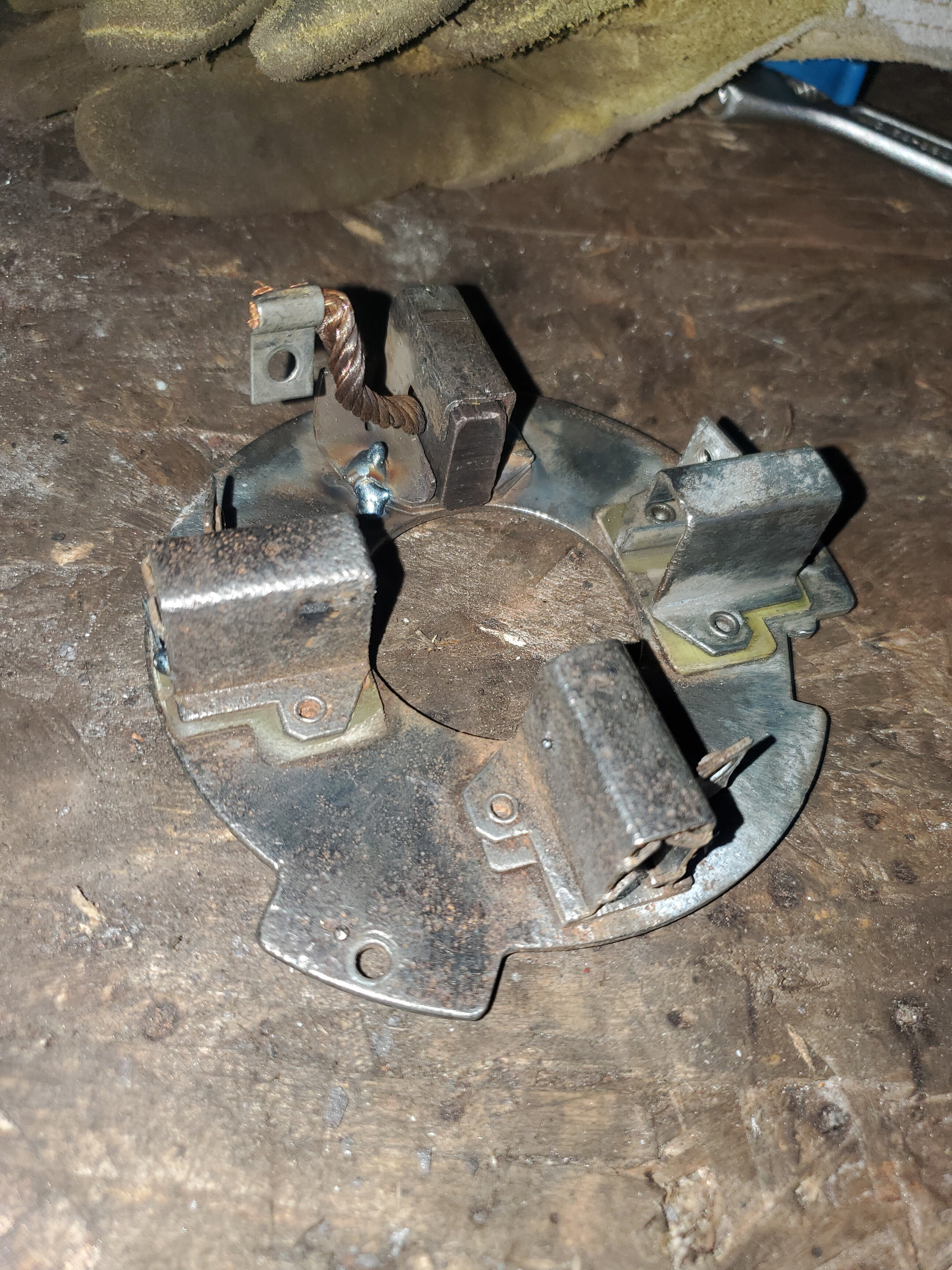Aucuna trace de chauffé, pas d’odeur, il y avait un fil cassé au point de soudure cuivre/fer(rouillé). J’ai 2 balais directement au ground et 2 isolé de la plaque (assises non conductrice contrairement aux autres en fer).