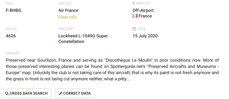 Un Constellation il y en a un qui a longtemps servi à Orly pour l’entrainement des pompiers…