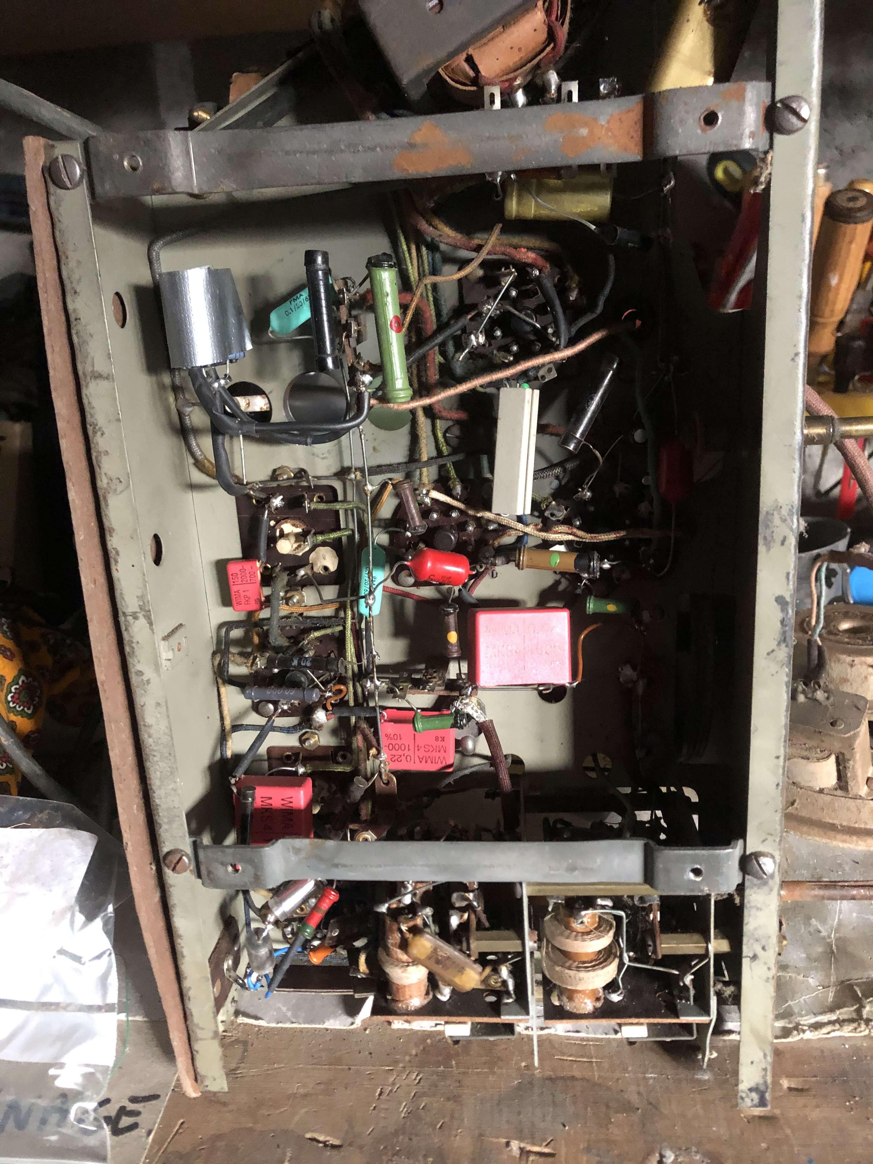 penser aussi a verifier les résistances de grille, surtout celles qui distribuent la Commande Automatique de Gain a la melangeuse et a la 1er MF