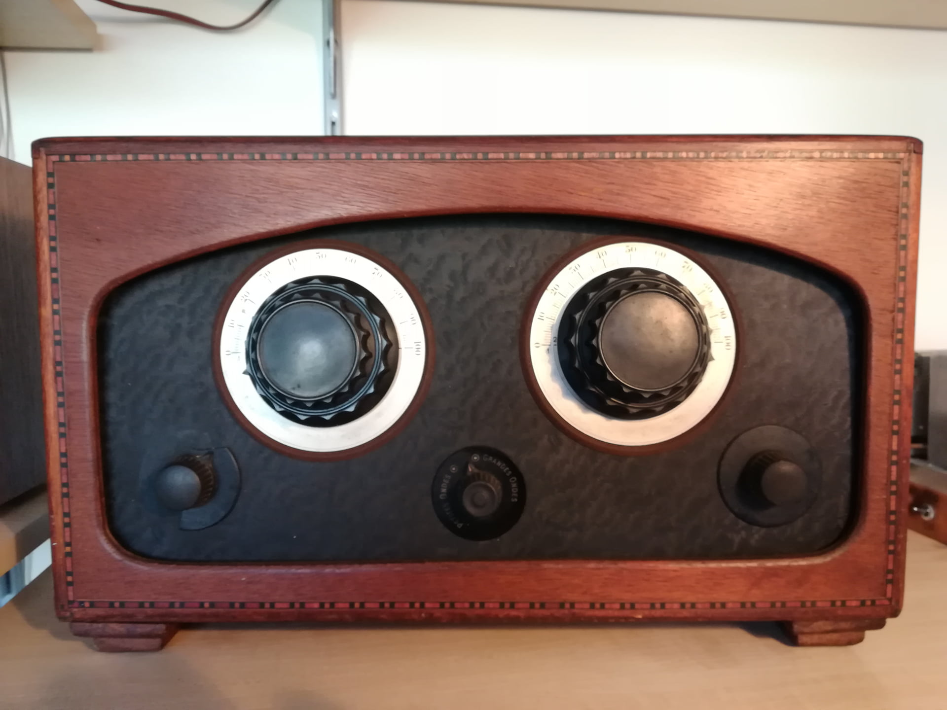 Ma très petite collection se limitera à un représentant de chaque « grande » famille technique (ce qui n’est déjà pas facile à définir …). Suivant les conseils éclairés de HLJ, j’ai fait l’acquisition d’un poste batterie, très probablement de construction artisanale, mais en assez bon état. Il est équipé de 5 lampes : une bigrille (5br.) , X (4 br.), Y (4br.), A416, P414.