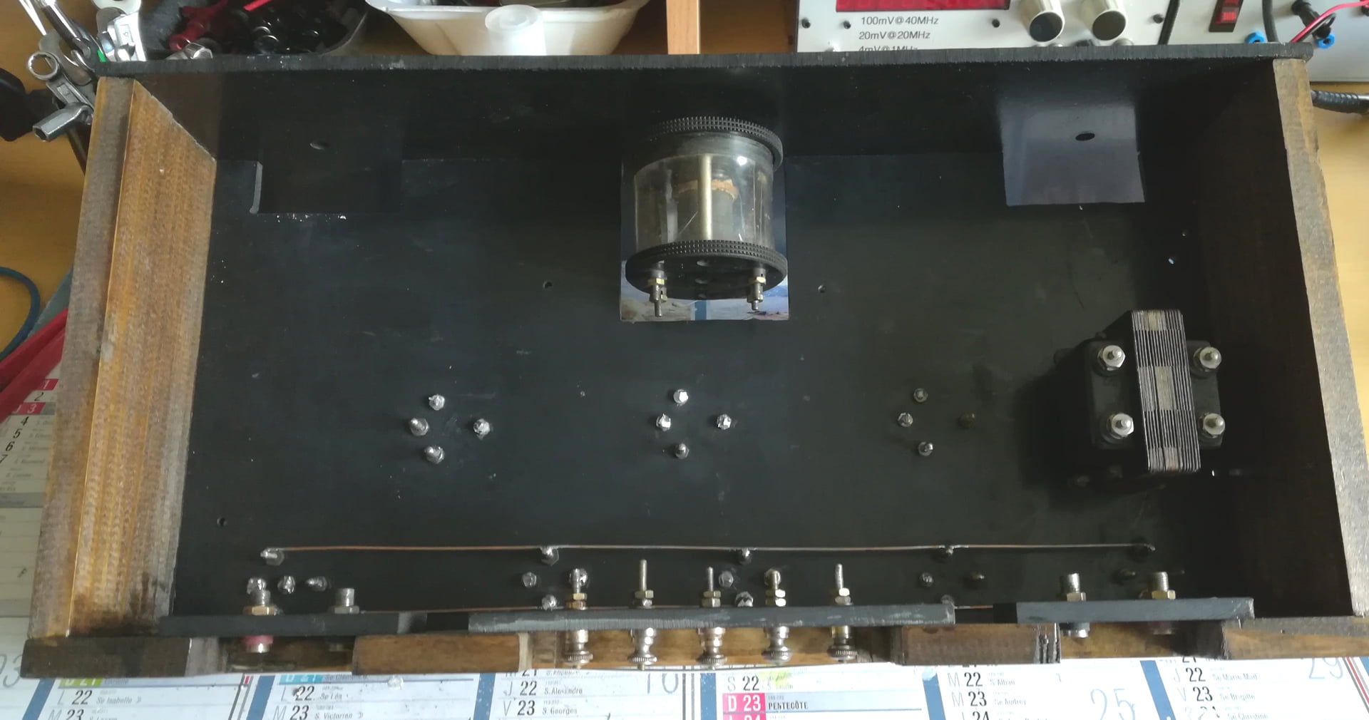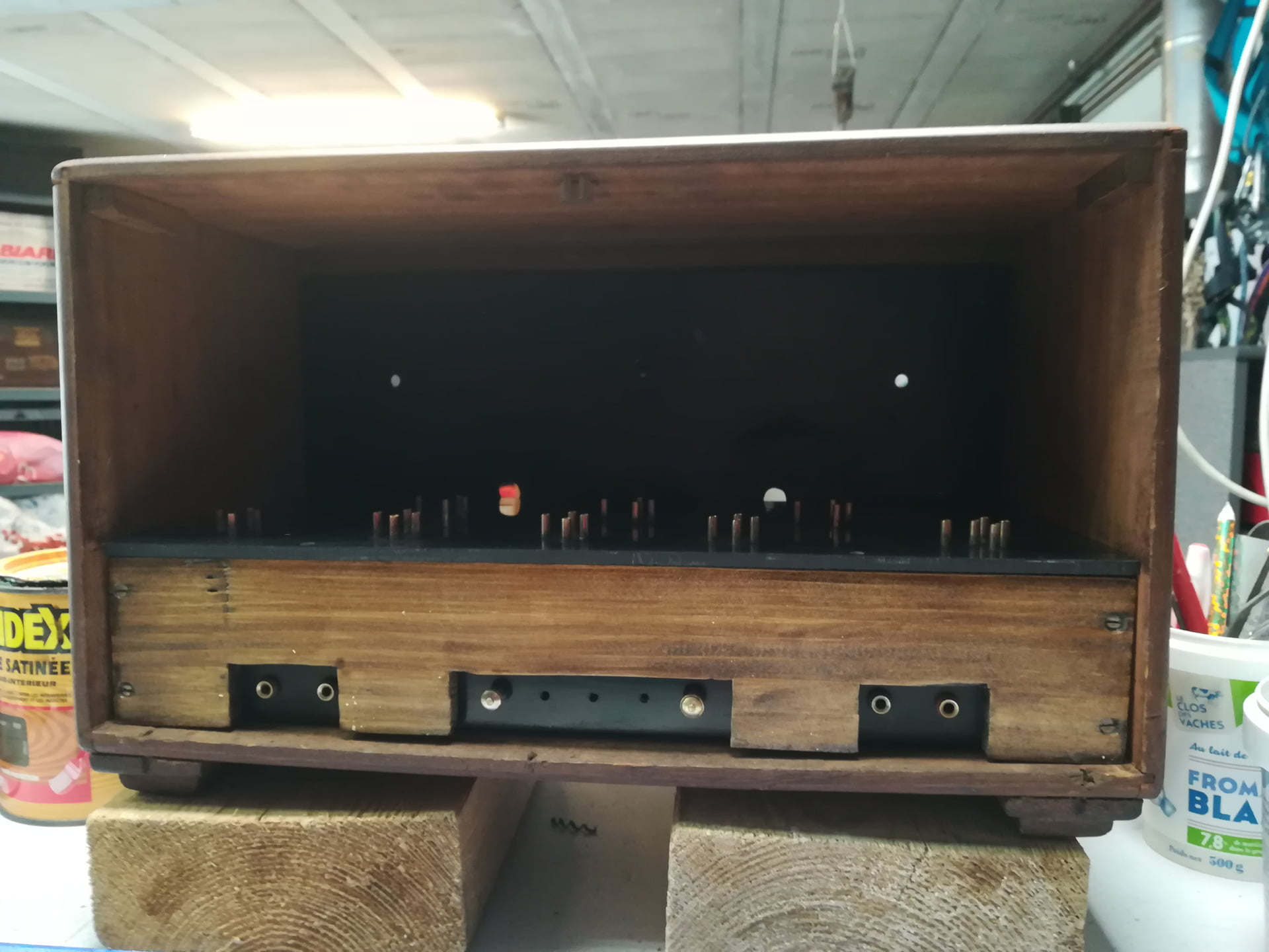 La reconstruction de ce poste « batterie » avance : socle en bois et borniers refaits, nouveau transfo BF et bloc oscillateur Gamma en place.