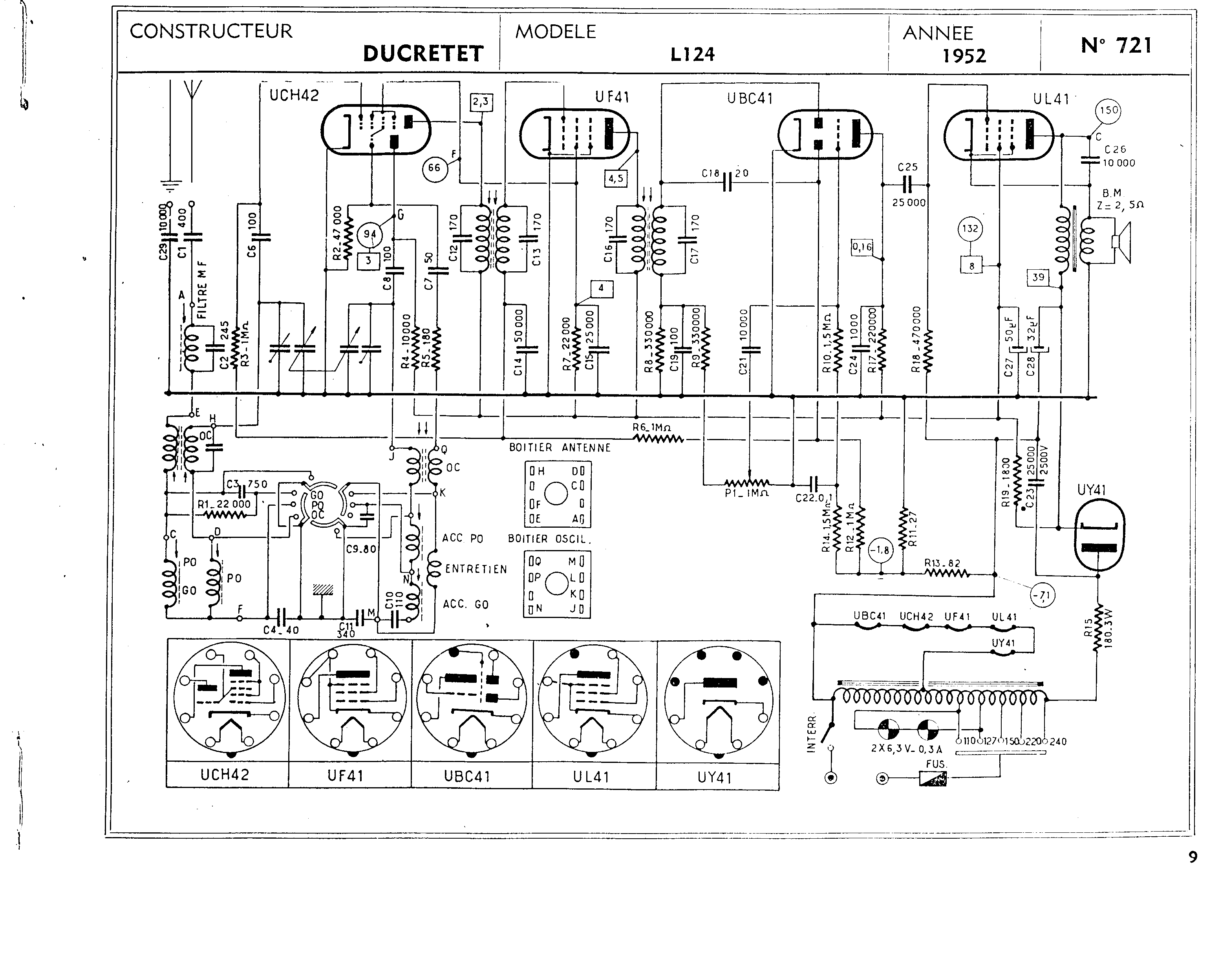 Je suis actuellement entrain d’effectuer la révision d’un Ducretet Thomson L 124 qui a le même jeu de lampes et également ce même genre de « résistances -pièges ».
