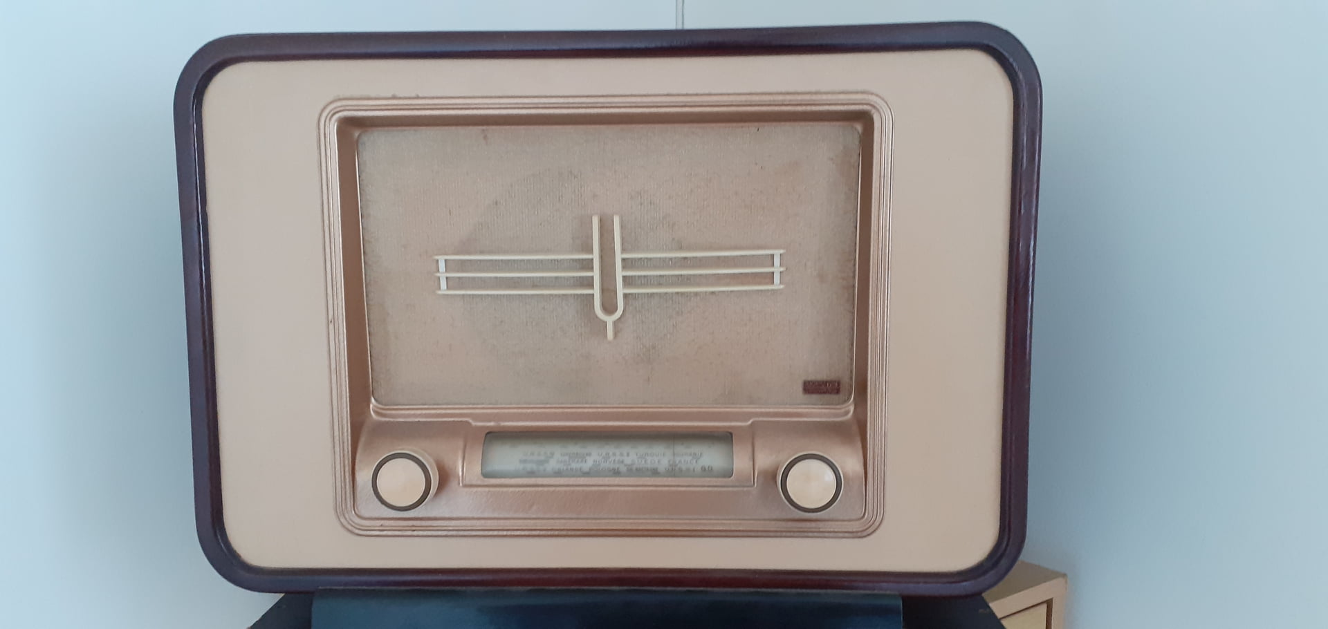En ce qui concerne la restauration de ce L124 que j’ai regardé sur le lien indiqué plus haut, effectivement nous pouvons constater qu’il y a eu beaucoup de travail d’effectué. J’ai remarqué que le tissu de remplacement est du même ton que celui que j’ai mis sur mon L124 et je trouve que le plus difficile dans ce remplacement, c’est de refixer correctement le bandeau doré inférieur car il faut que les minuscules petits clous soient bien enfoncés car autrement la partie supérieure du protège cadran des stations ne pourrait plus rentrer dans la glissière. En ce qui concerne ce cache cadran, il faut également refaire l’entourage doré qui sert à masquer certains éléments mécaniques du châssis qui ne sont pas très esthétique à voir surtout lorsque le poste est éclairé; cette opération est certainement le point le plus délicat de la restauration de ces Ducretet à tambour rotatif.