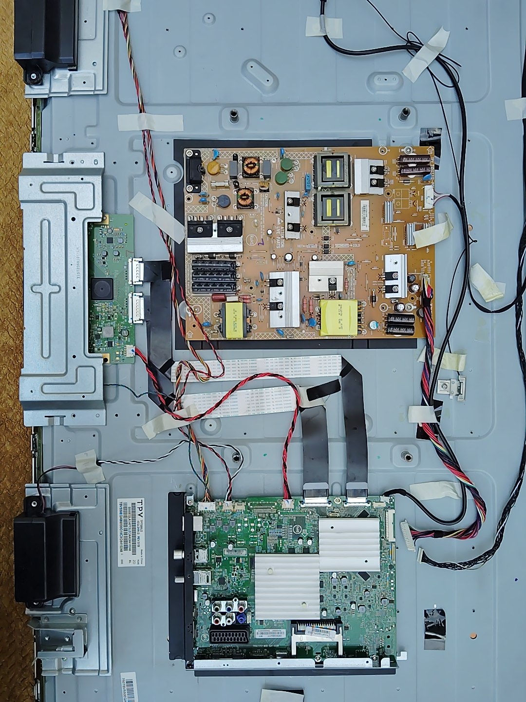 Alors remontage de la tele ,toujours pareil,un petit plus ,j ai flash de 2 sec a l ecran a l allumage ,j ai Referifier les nappes enfin toutes ,malheureusement je suis au meme point .