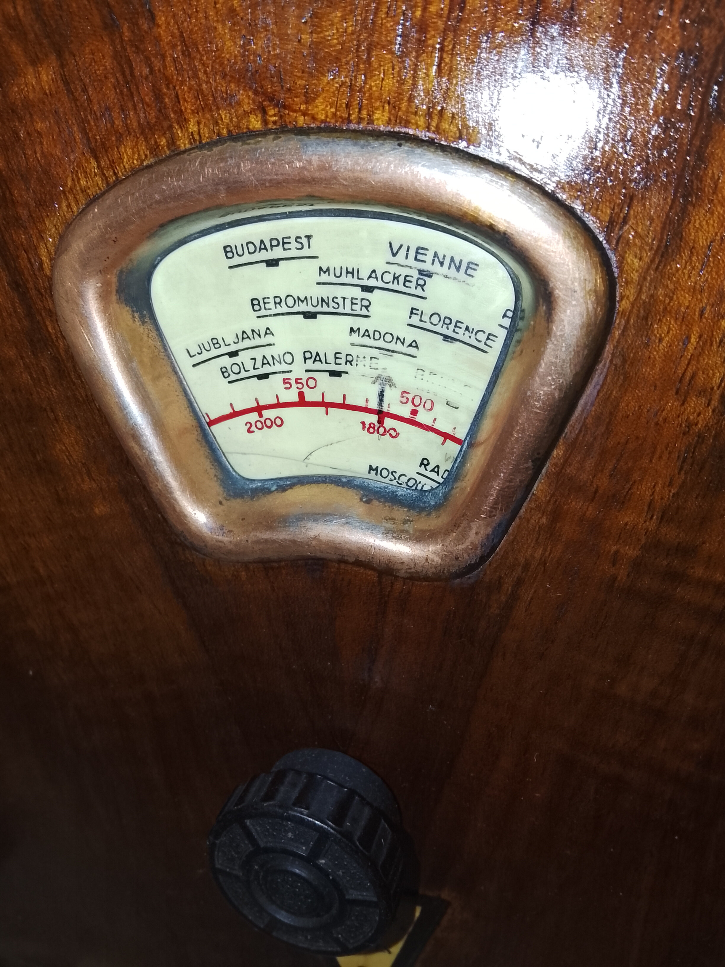 Les boutons ressemblent étrangement à ceux d’un « Pilot » !? (grande marque américaine) mais le cadran n’a rien d’un poste américain (il est en français et il y a les grandes ondes, pas plausible pour un poste américain) !?