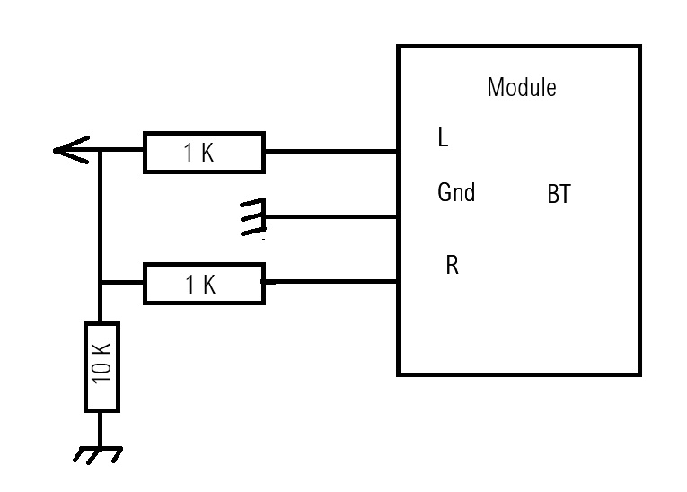 Suite au montage du MiniTX j’ai remarqué que le module BT ou FM passait du stéréo en mono avec un montage de résistances. Lors de mes précédents montages pour attaquer la prise PU, je me contentais de prendre soit le signal en L ou en R et d’attaquer directement l’entrée PU (ça fonctionne bien).