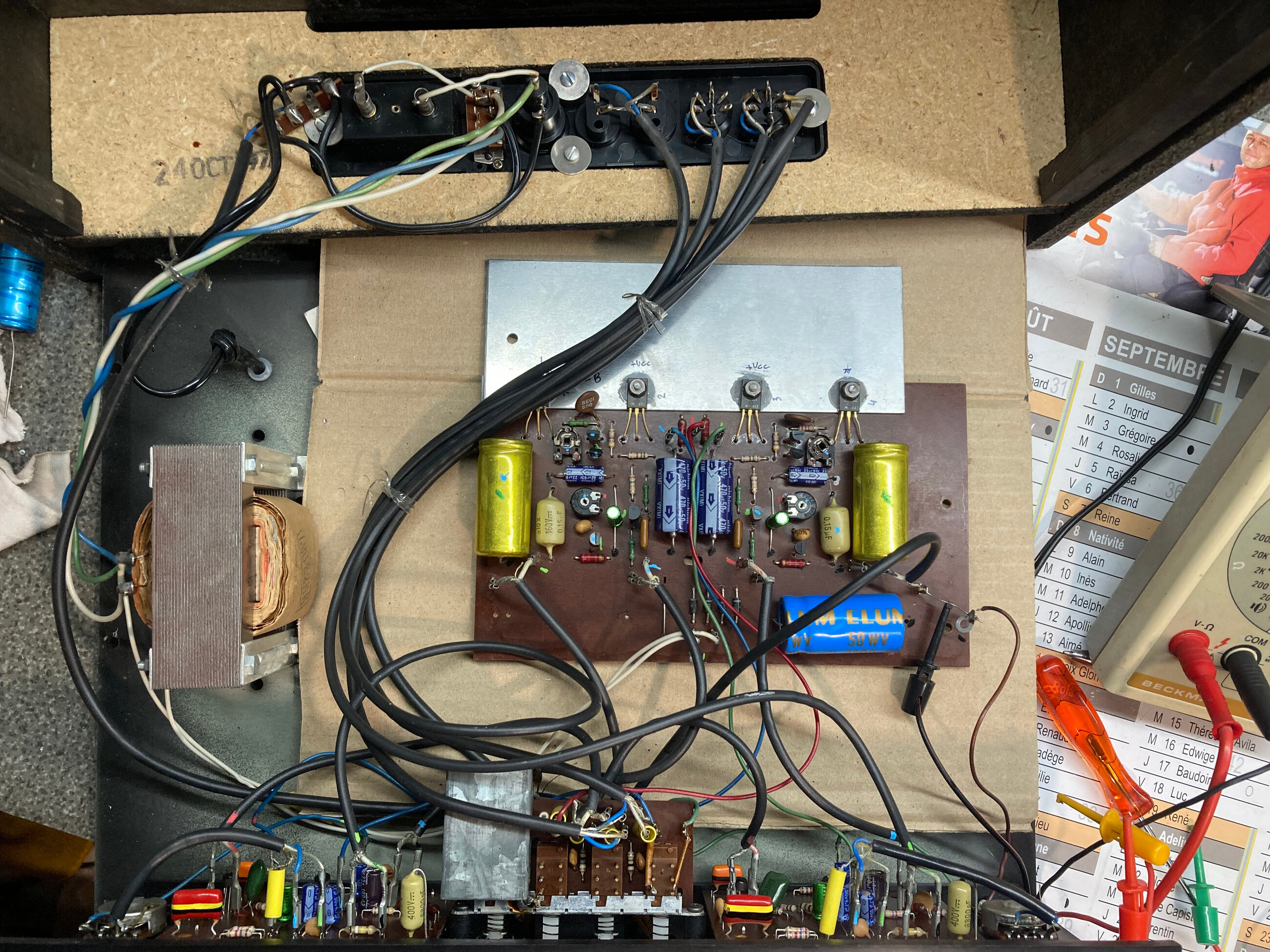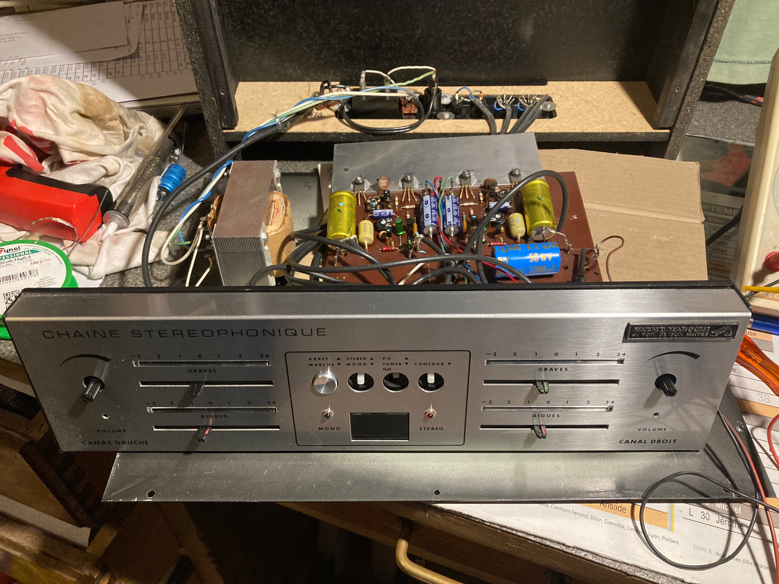 Les tensions sont avec les E de TR1/2 déssoudés, en y mettant un ampermetre, et en réglant le bias à 15ma, j’ai: