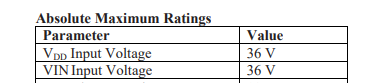 36V c’est le max admissible du module essayez plutot 18V comme indiqué sur la doc
