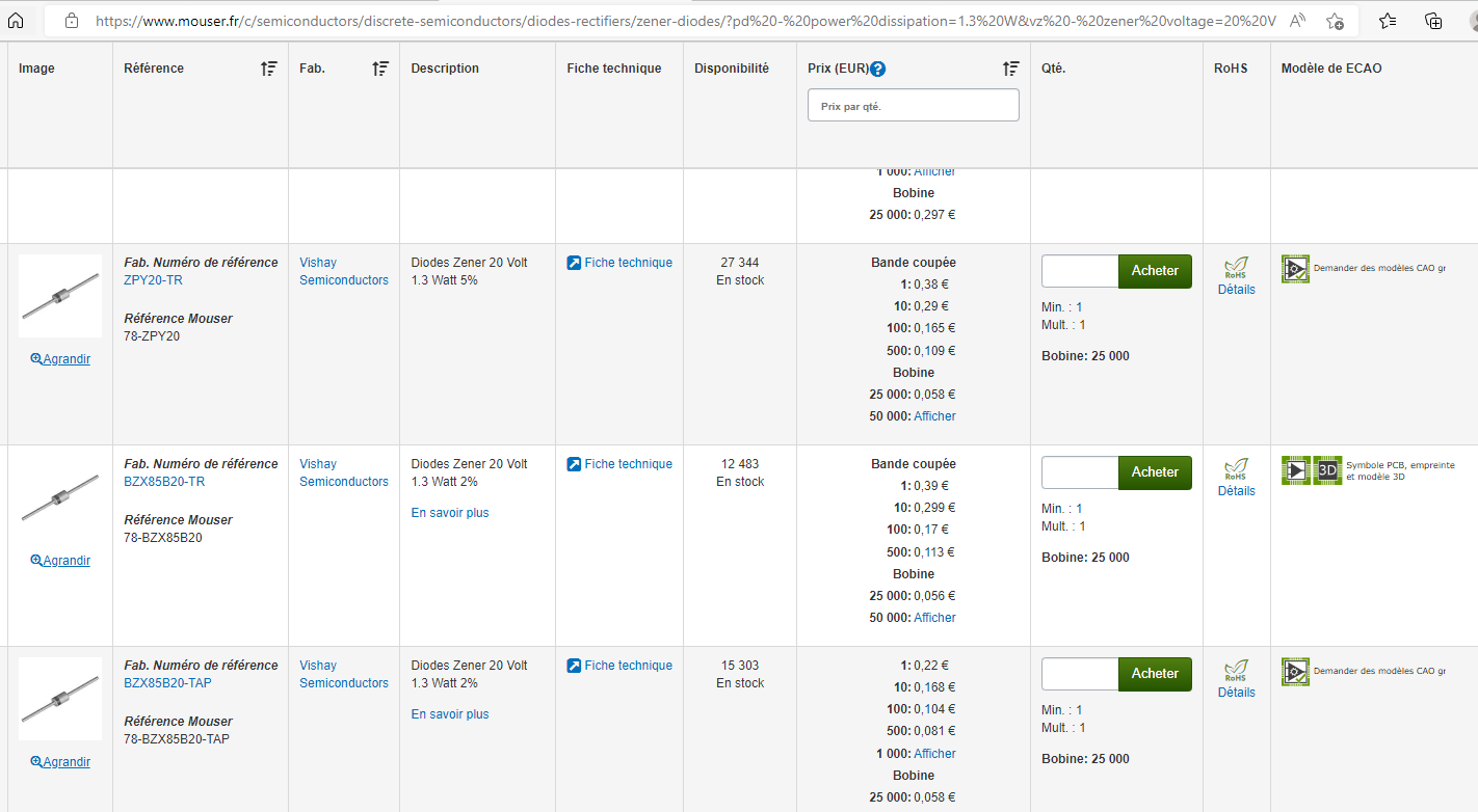 J’ai trouvé la zener 20v mais pas 22 ou 25 v sur mouser… a moins que tu es une ref ?