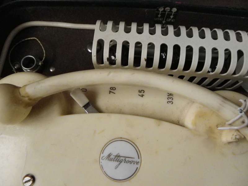 D’autre part le nom “multigroove” est certainement une marque déposée de Philips pour qualifier le fait que cette platine pouvait à la fois lire les disques “normaux” de l’époque (78 tours) et les tout nouveaux “microsillons” (33 tours seulement, les 45 tours n’existant pas encore).