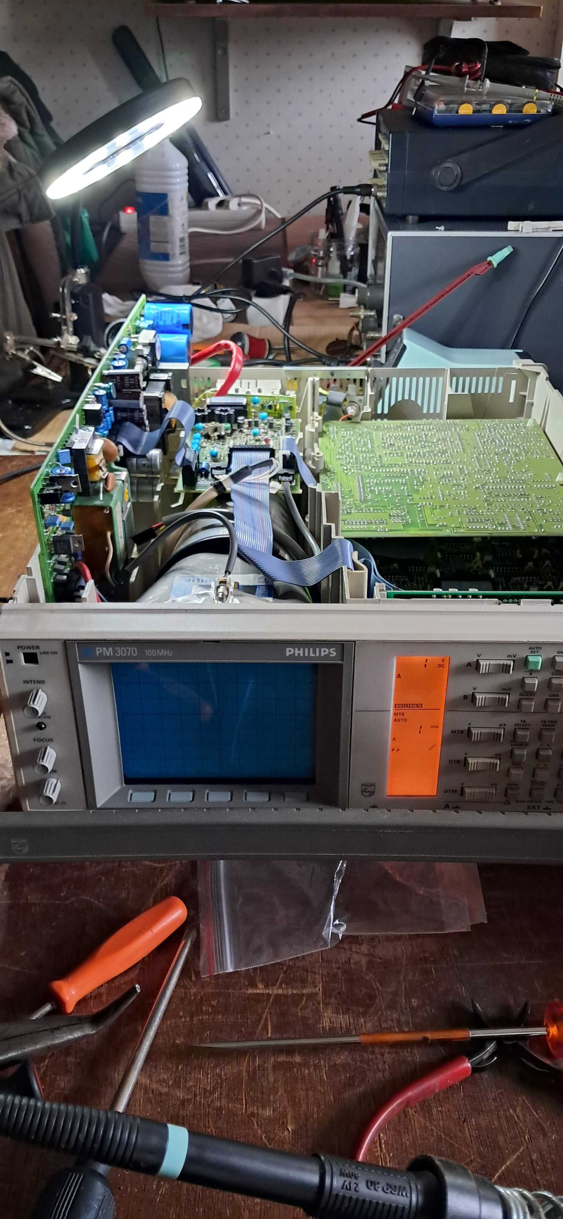 Ayant besoin d’un bon oscillo pour effectuer des réglages FI sur mon Saba Freiburg 125, j’ai ouvert mon PM 3070 qui ne donne plus aucun signe de vie depuis la dernière fois que j’ai voulu m’en servir, il y a environ 1 mois.