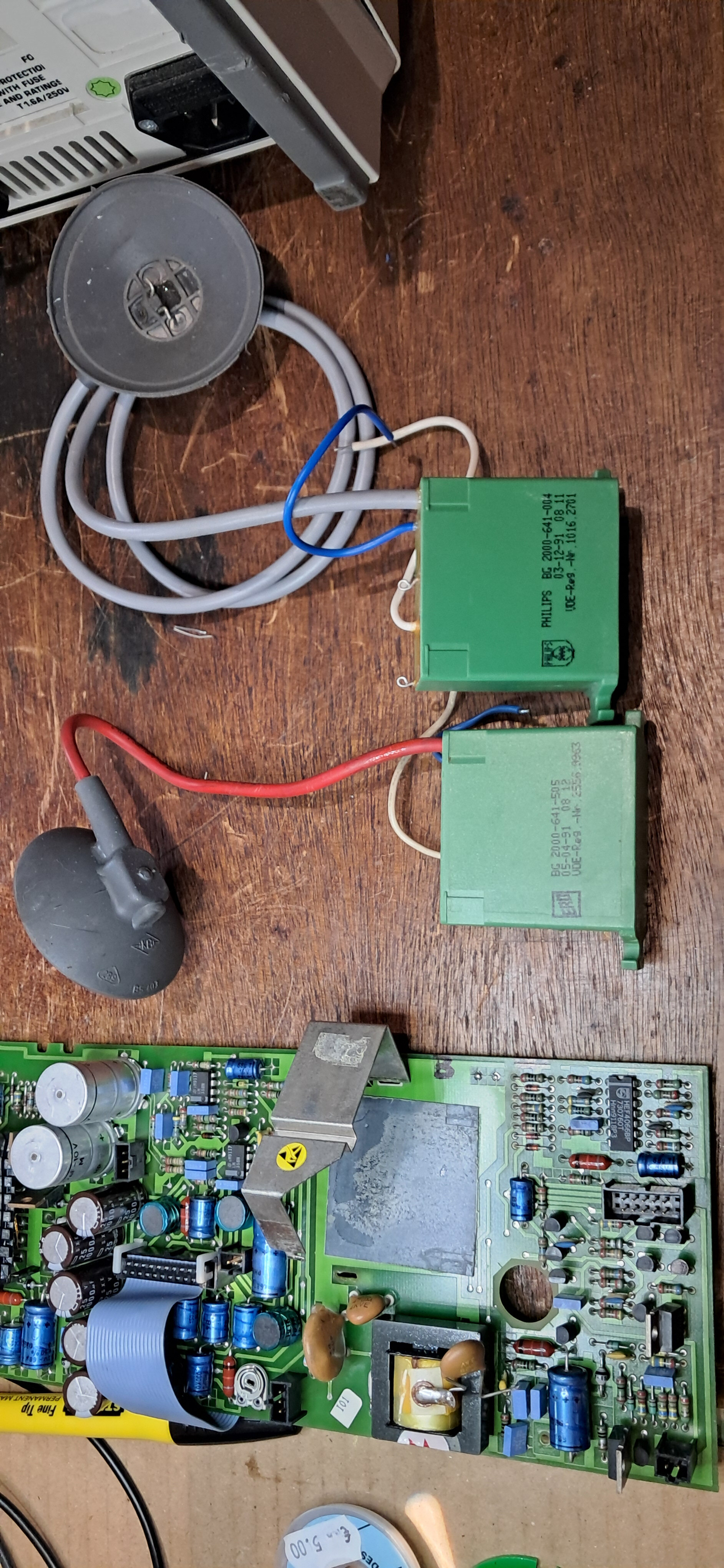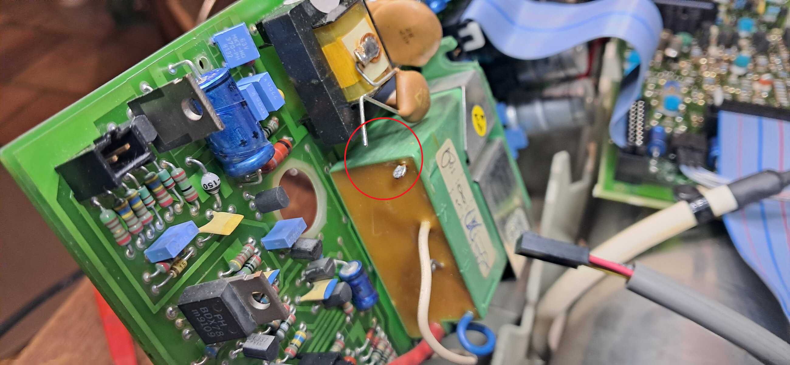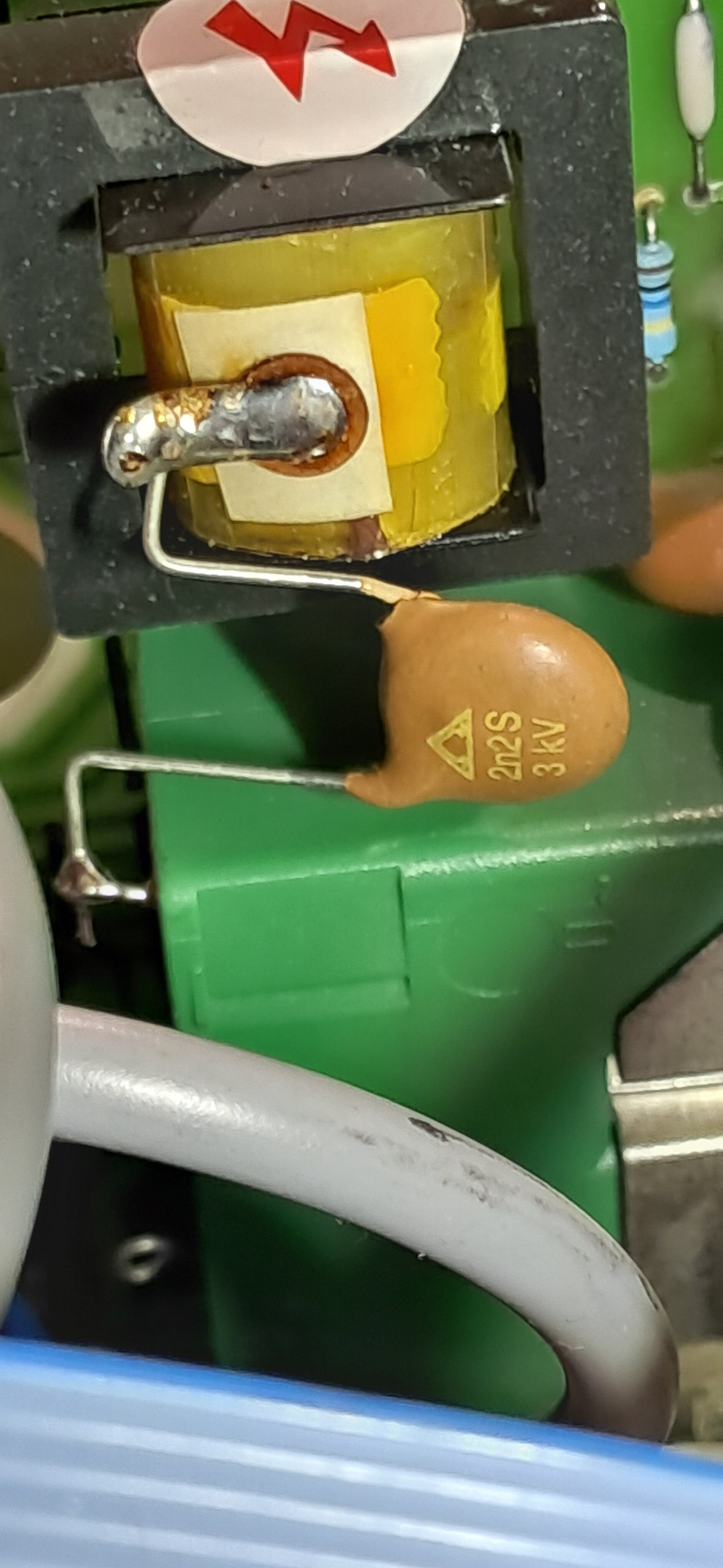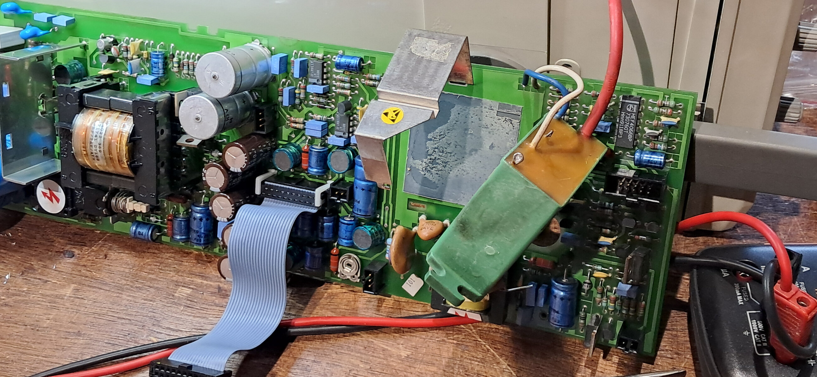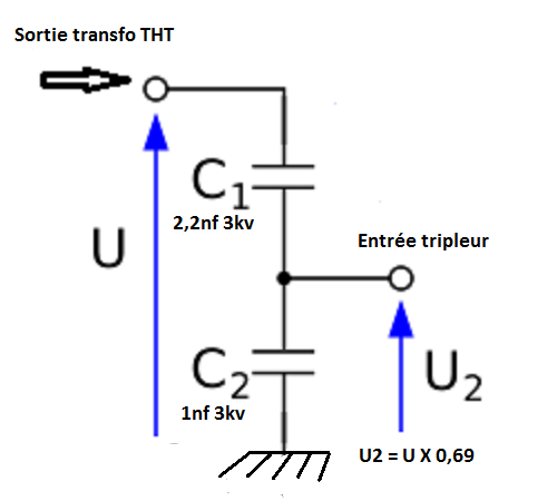 Surement le réflexe conditionné d’un ancien dépanneur TV, je débranche l’entrée du tripleur, je remets sous tension et constate que le LCD en façade refonctionne et que je peux tirer un arc en sortie du transfo HT.